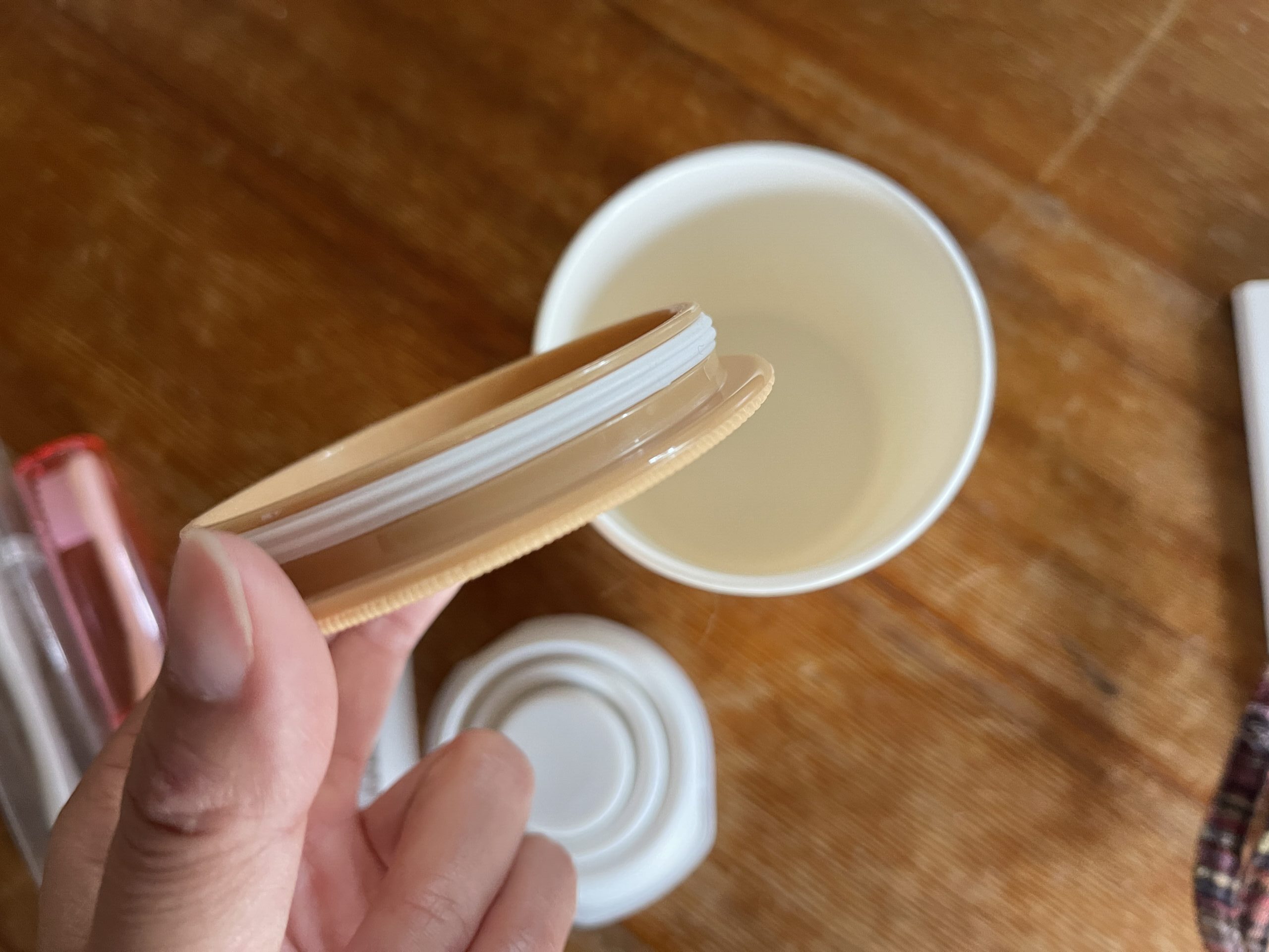 前は真っ黒で口がしっかり閉まるスクリュー式の蓋の容器使ってたんですけど、見た目優先でこうなりました(笑)