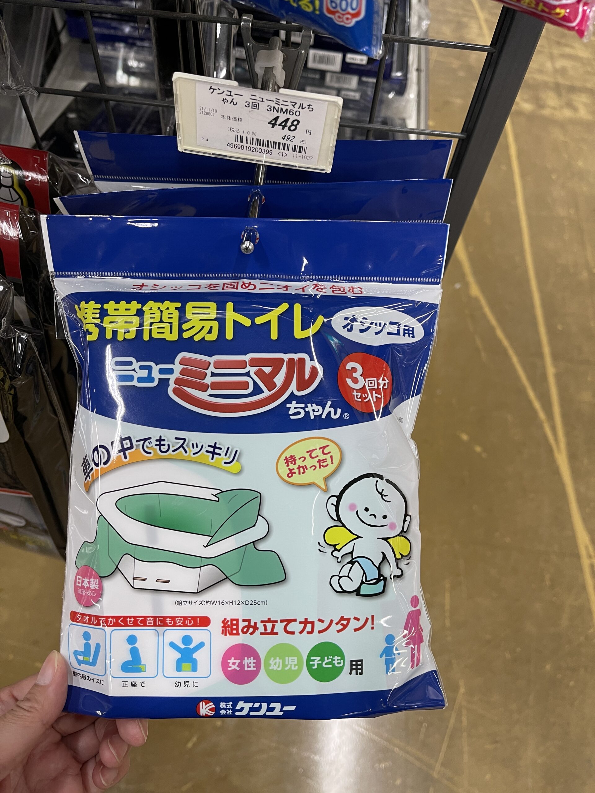 使い捨て系は100均のミニ携帯トイレで1回分のもありますけどあれは女性、子供には使いづらいんですよね。