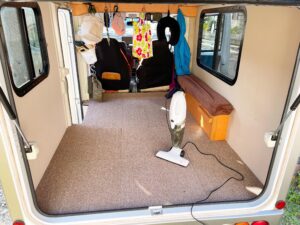 後部座席を使うことは車検時以外、ほとんどないと思いますが、何かの緊急時には一応4名乗車がOKな車ではあるので、後部座席とベッドキットは家の片隅にしまってあります。