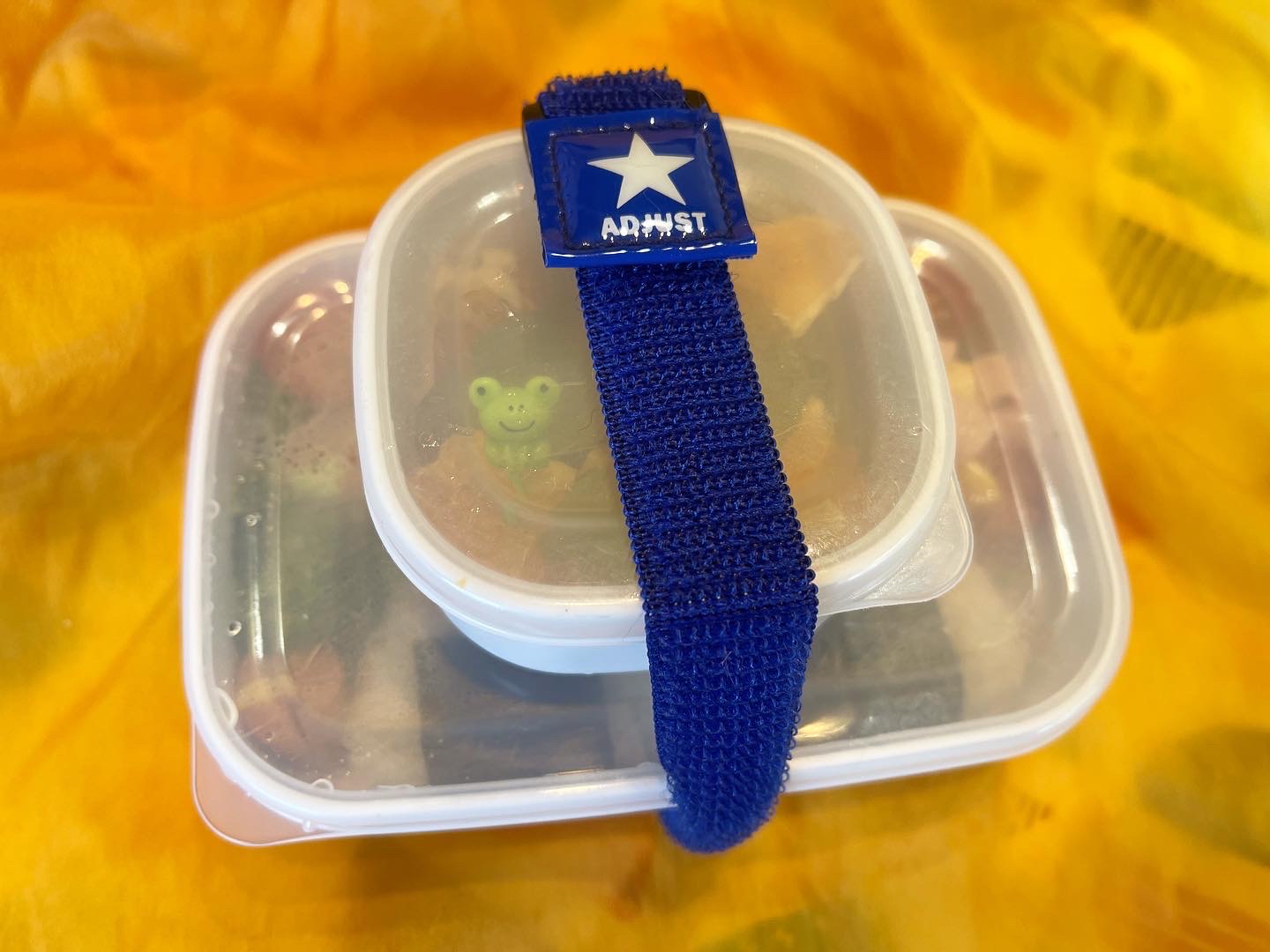 同じくセリアのバンドと、布製の袋に入れて、完成です。