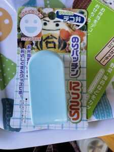 のりパッチンとの相性もよく、サクッと顔を作成し、おにぎり土台に、味付け海苔を配置して、口の部分だけ、こちらもセリアで買った「デコレーションカッター」なるものを使い、なんとか作成