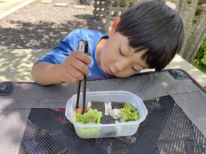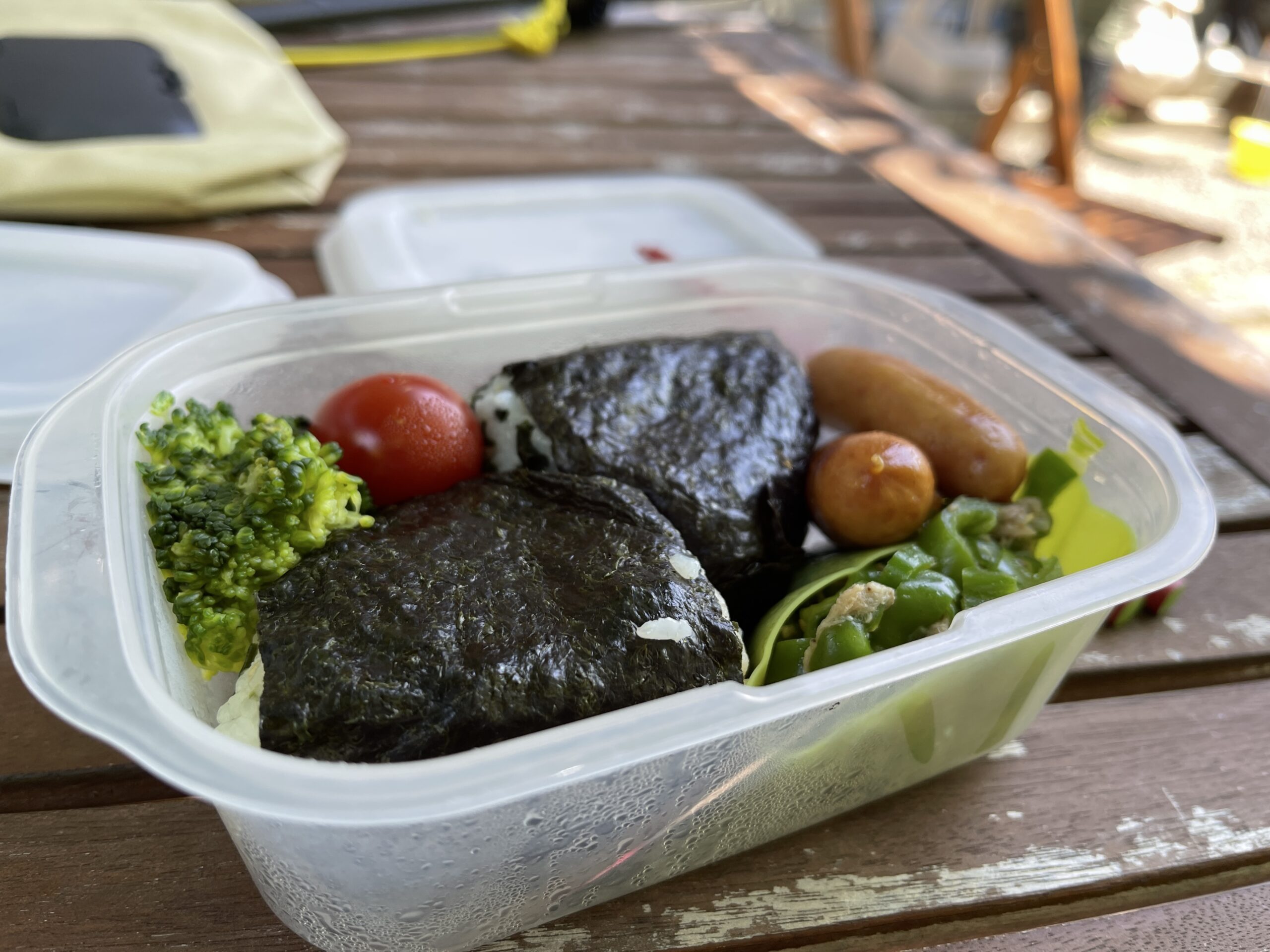 遠足で、お昼までこの形をキープできるかどうか怪しかったので、保育園に出かける前に、この状態のお弁当を見せてあげたら、息子くん