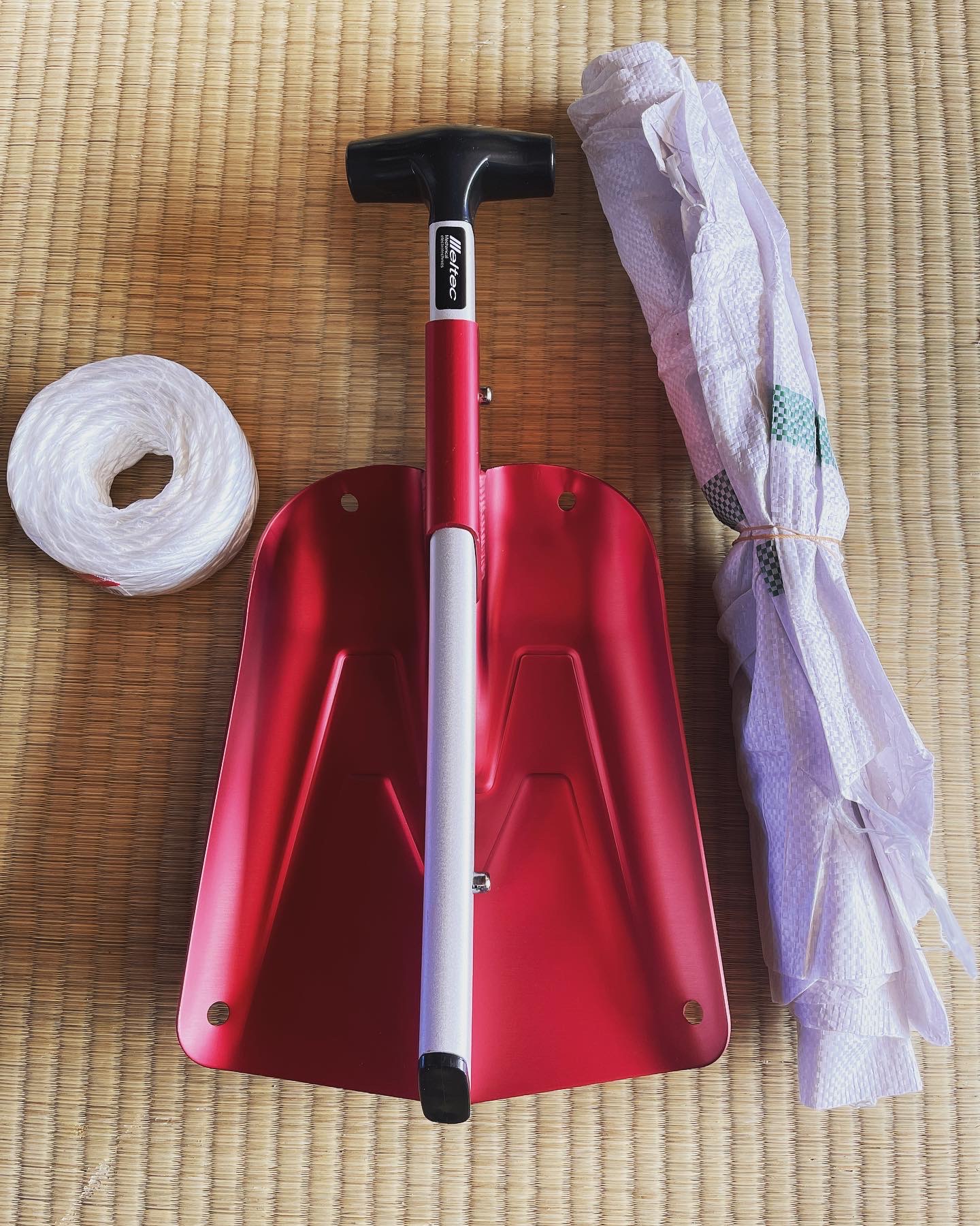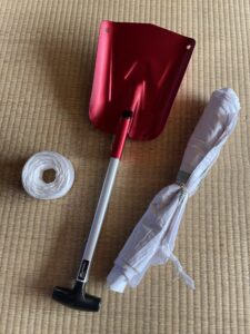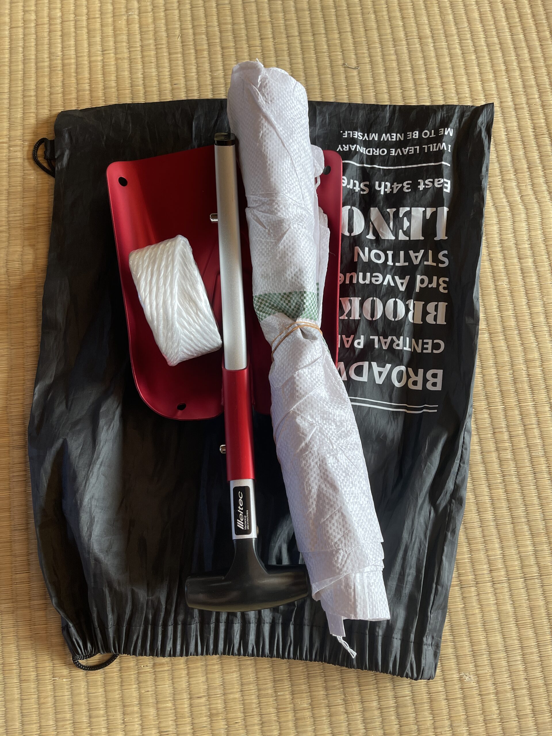折りたたみ軽量アルミスコップなので、100均の袋に全部収納してもかさばりません。