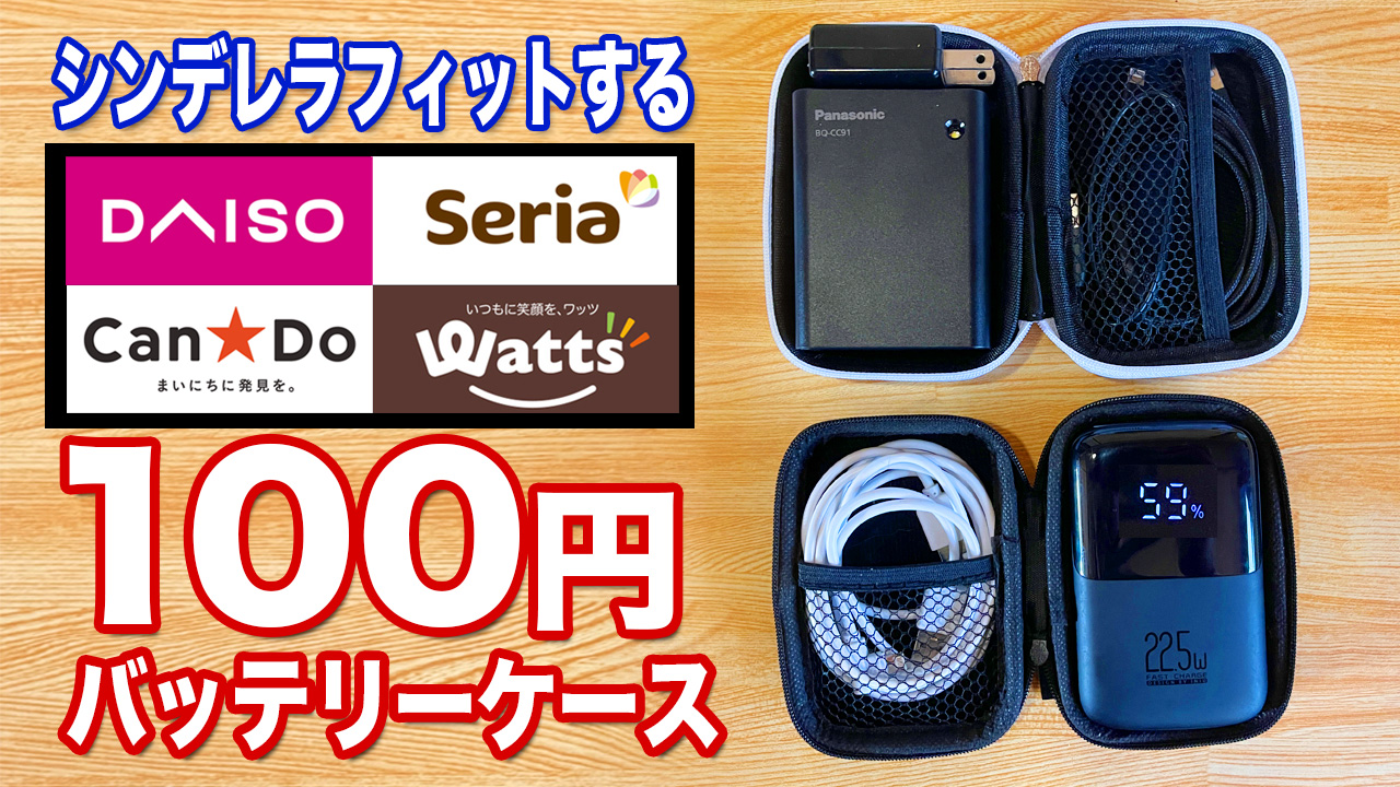 そして、キャンドゥで発見した白い同形のケースには、こちらも先日別の動画で紹介した充電池充電器を入れています