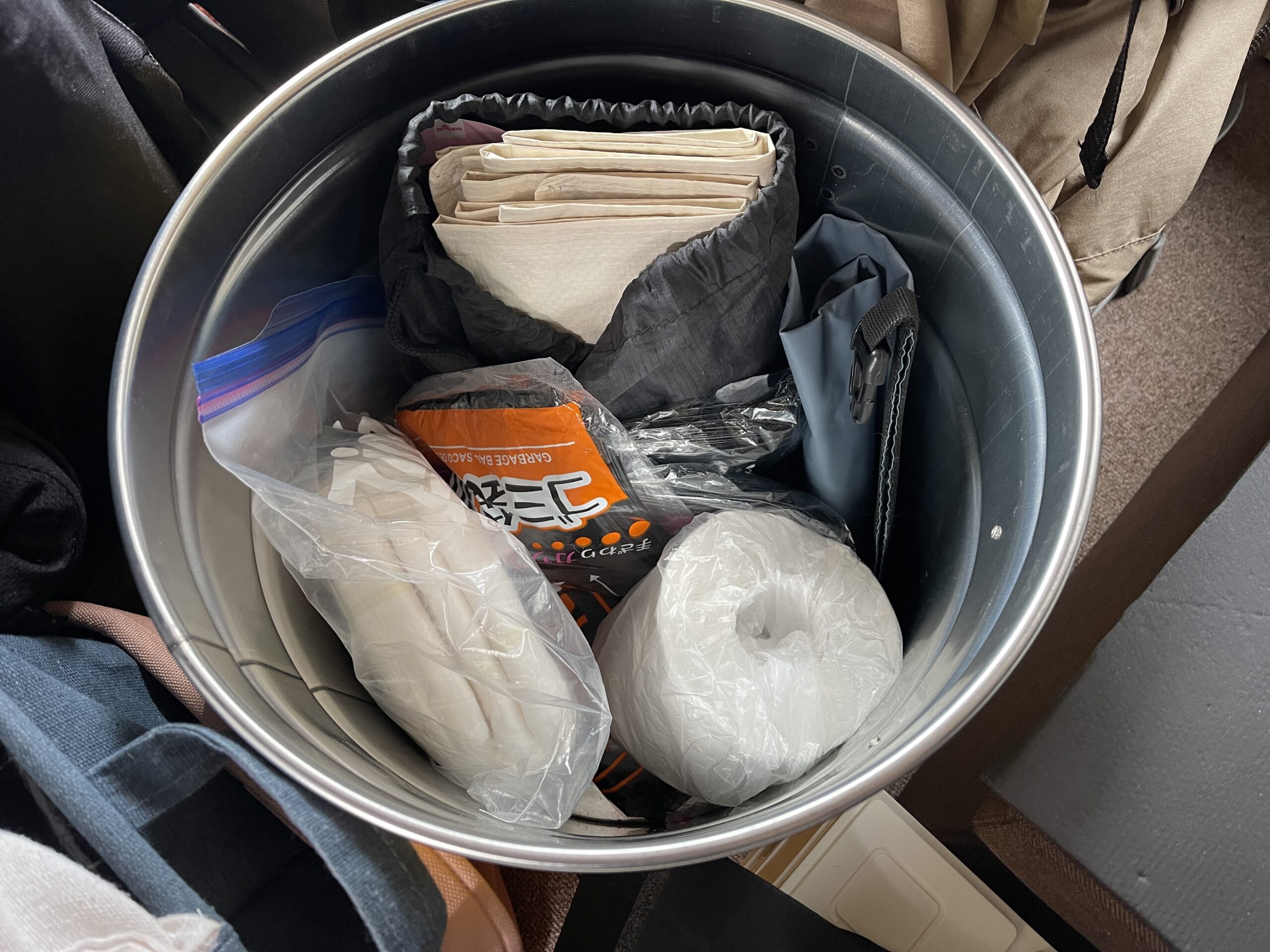 だいたい3Lのバッグに小だと3回分くらい、車中泊1泊分は入ります。