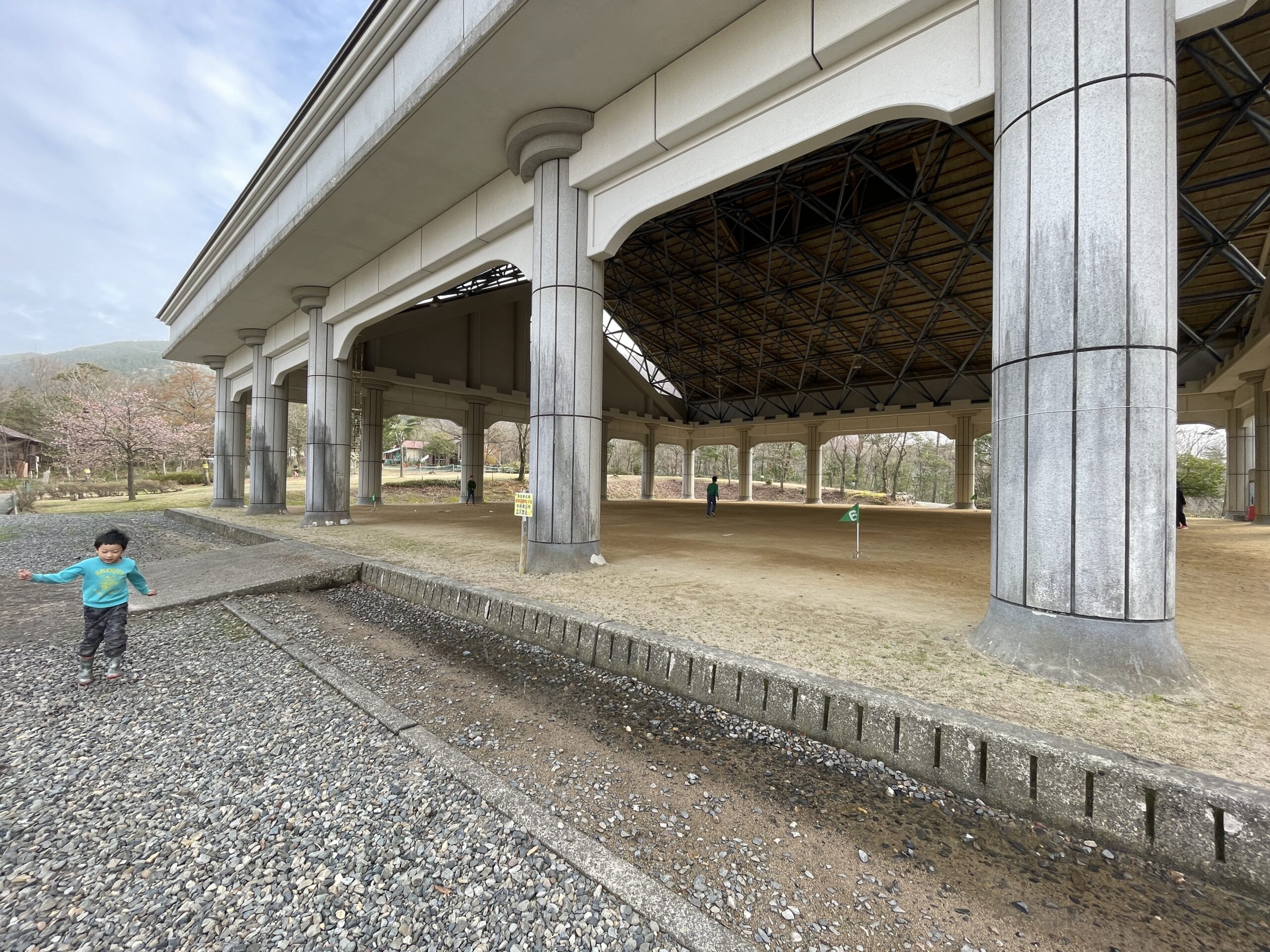 屋根付きの広場があるので、雨の日でも外遊びしやすいですね