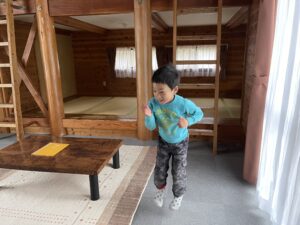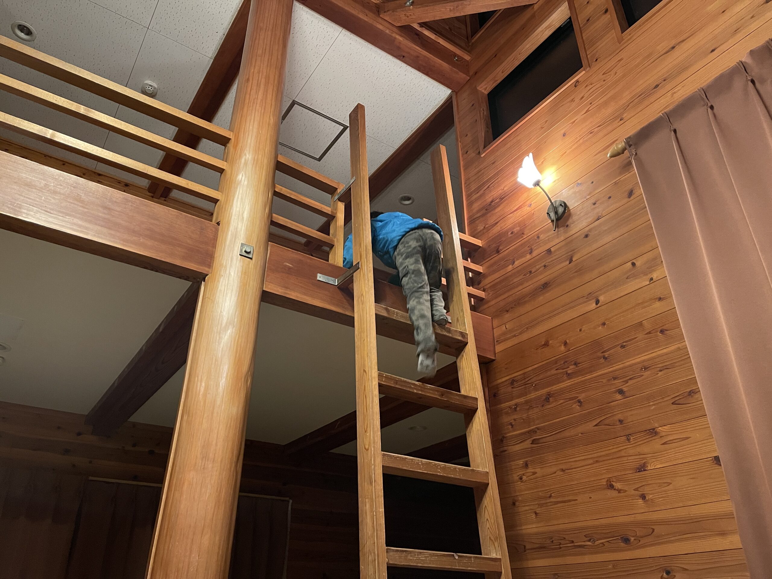 畳敷きのベッドスペースはロフト調の2階建になっており、はしごのサイズも大人向けなので、息子くんが、登ったは良いけど怖くて降りれなくなって「母ちゃ〜ん」と呼ばれたので、抱きかかえながら降りるハメになり、大変でした😅 身長が低い子供は2階は危険ですね
