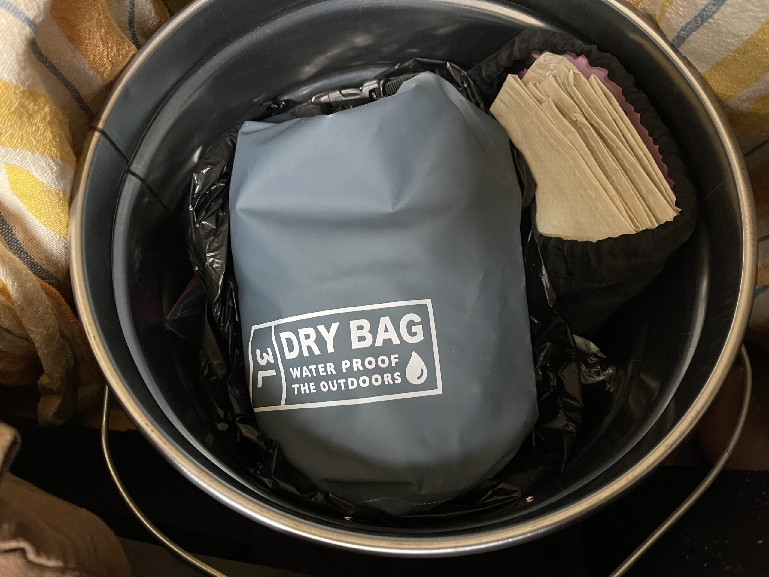 ドライバッグ(大)500円も持っていて、こっちはキャンプでまるっと2日分くらいのポータブルトイレのゴミ入れになっています。