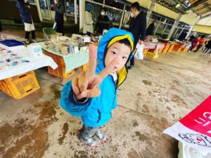グリーンパークに宿泊していた友達家族と合流して、道の駅の朝市でお買い物です