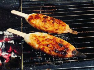 真空パウチの五平餅だったのですが、すぐ焦げてしまって、でもちょっと固くてで、雰囲気は楽しめたものの今一つな感じだったので、もし次回五平餅を作るとなったら、やっぱりお米を潰して自作しようかと思いました。