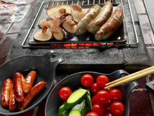 ここの施設のBBQエリアは焚き火は禁止で、指定されたBBQ台で炭火のみOKとなっています。
