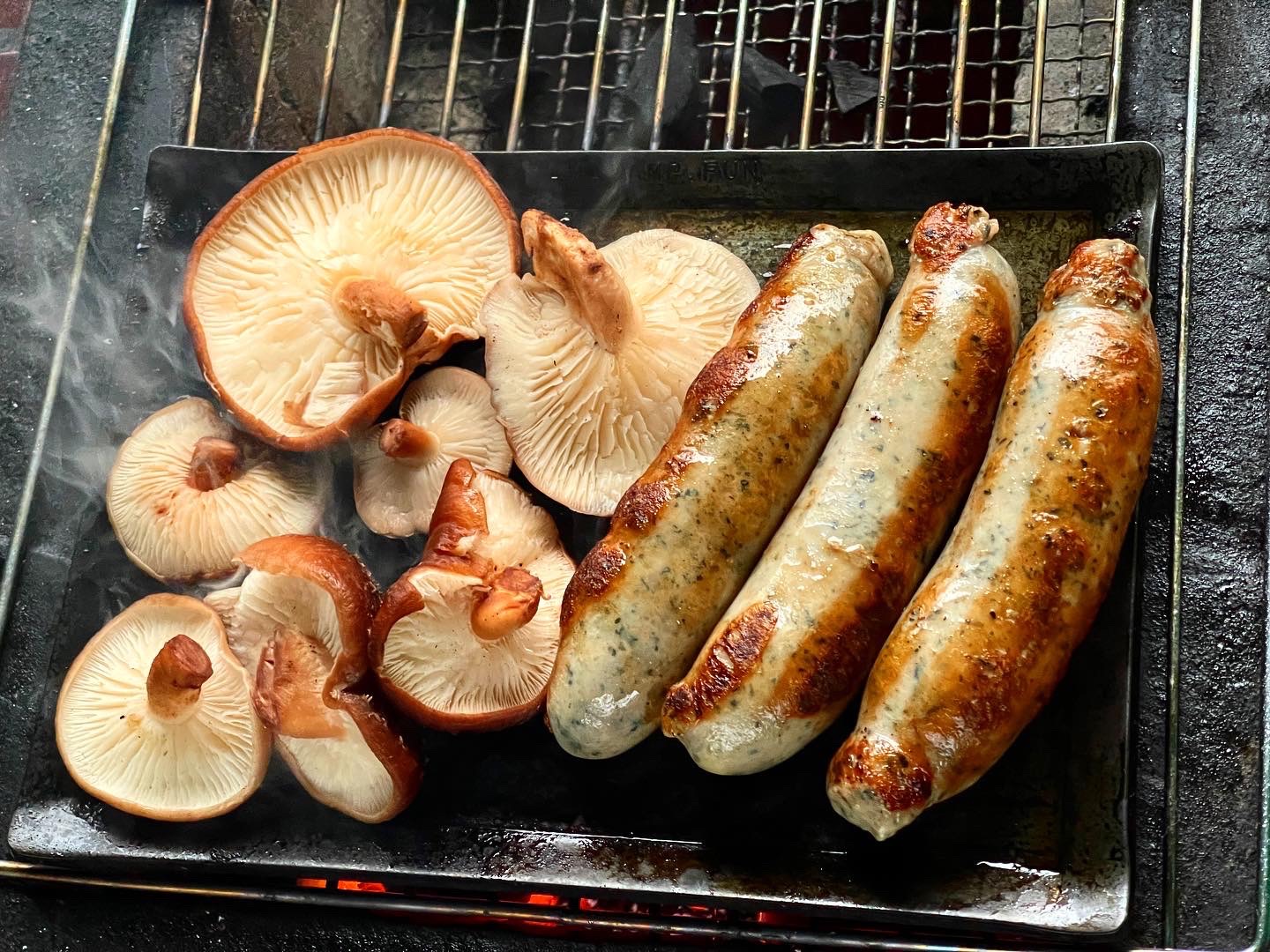 友達が買ってきた原木栽培のしいたけと、業務スーパーで1本60円台だという巨大なウィンナー!