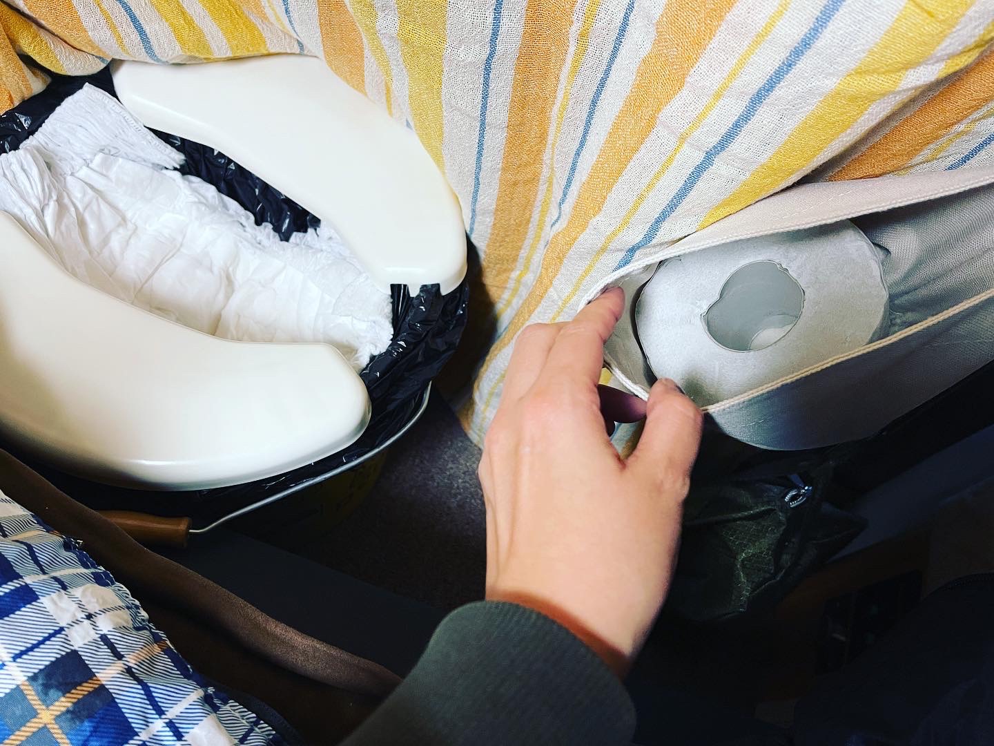 夜中〜早朝、いつでもトイレができるようにポータブルトイレをスタンバイ。