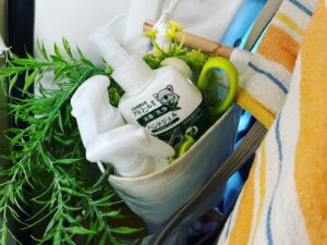 後ろ手に、除菌シート、ウェットシート、除菌ジェル、消臭スプレーや携帯ウォッシュレットなどの備品一式も揃っています。(これらは常設・常駐です)