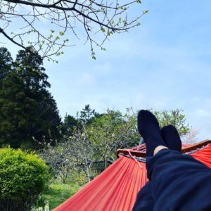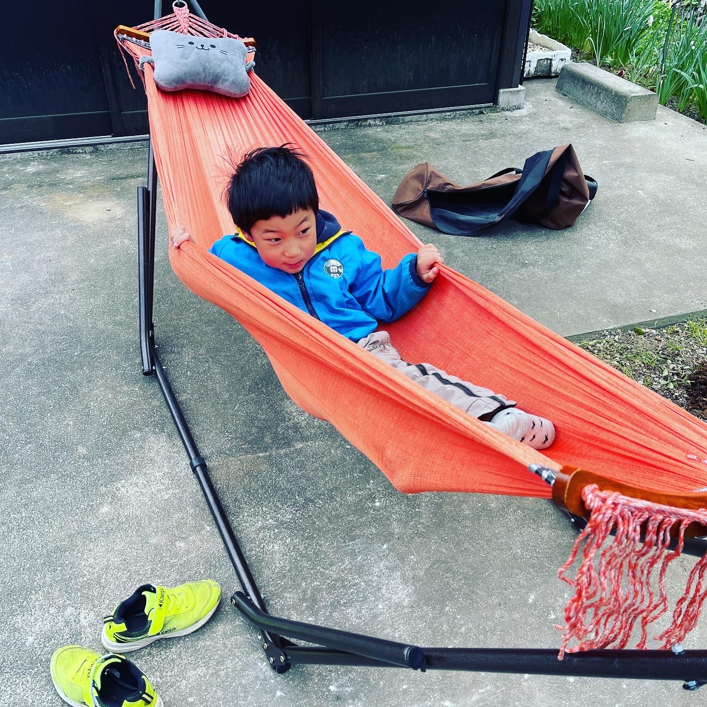 子供たちは案外、コットのほうが好きなんですが、私はやっぱりハンモックに寝っ転がってくつろぐのがキャンプで最高の時間ですね〜
