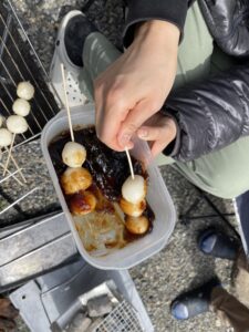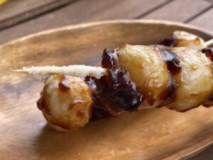 なかなか真ん中に刺すのが難しくて、個性的なだんごたちになりました
