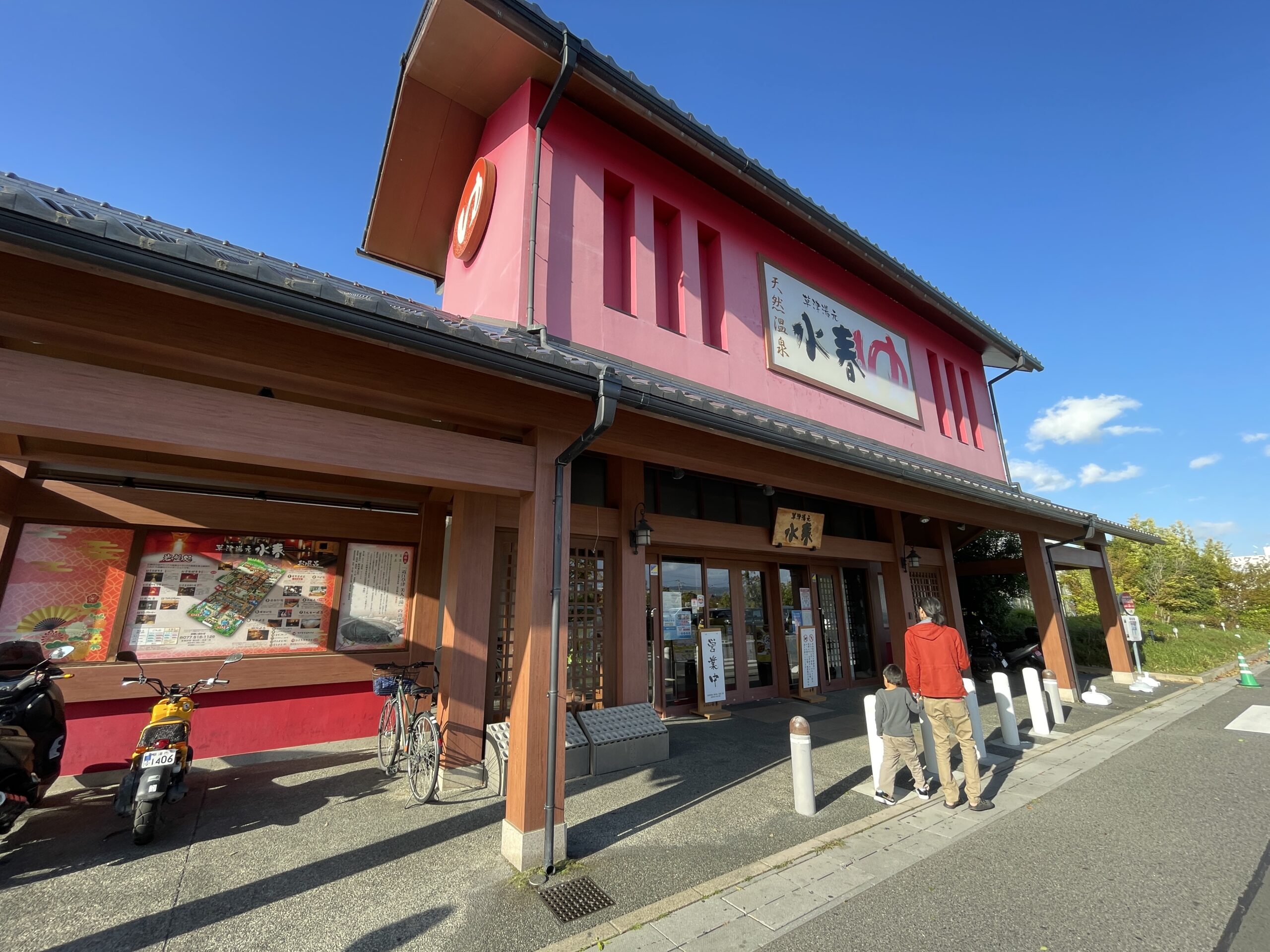 の続きになりますが、イオンモールでショッピングを楽しんだ後は、別館のBookOffの隣に、「草津湯元 水春」へ、日帰り温泉を利用しに行きました。
