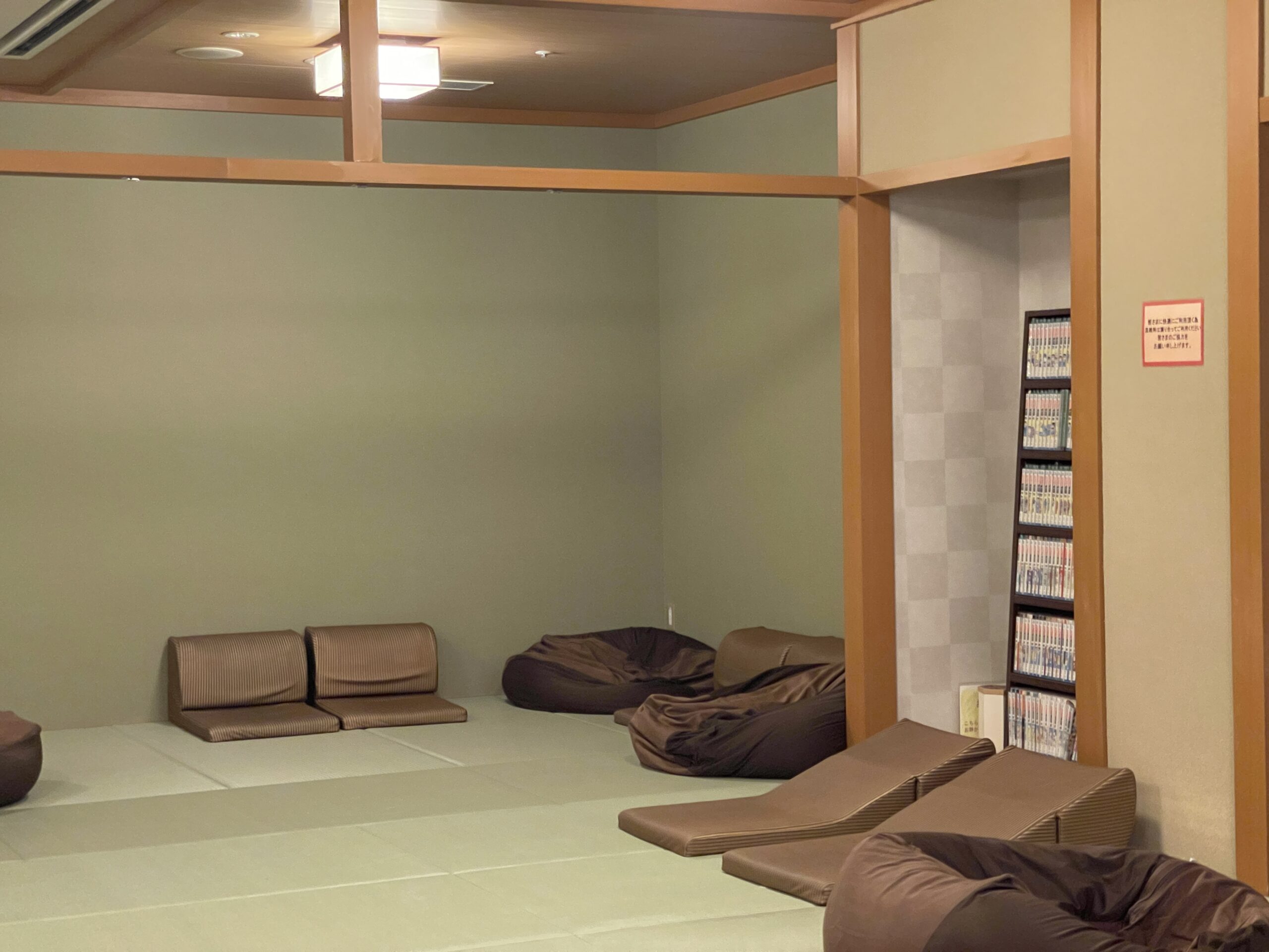 休憩スペースではみんな寝ながら漫画を読んでました