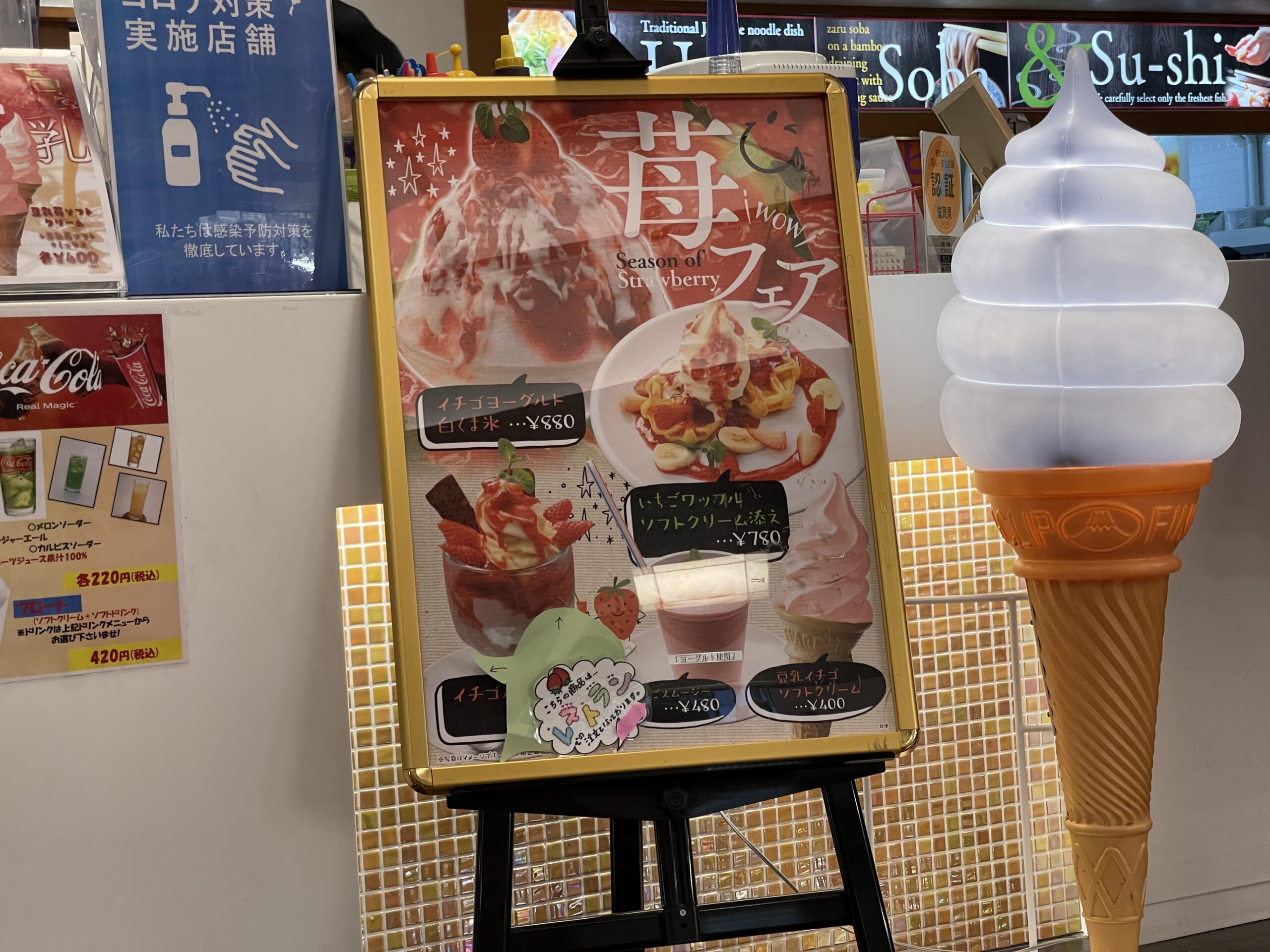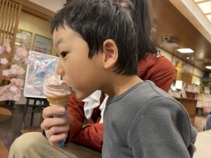 入浴後は、息子くんがいちごフェアにまんまとやられ、デザートにいちごのソフトクリームを買わされました(笑)ソフトクリームに400円かぁ💦