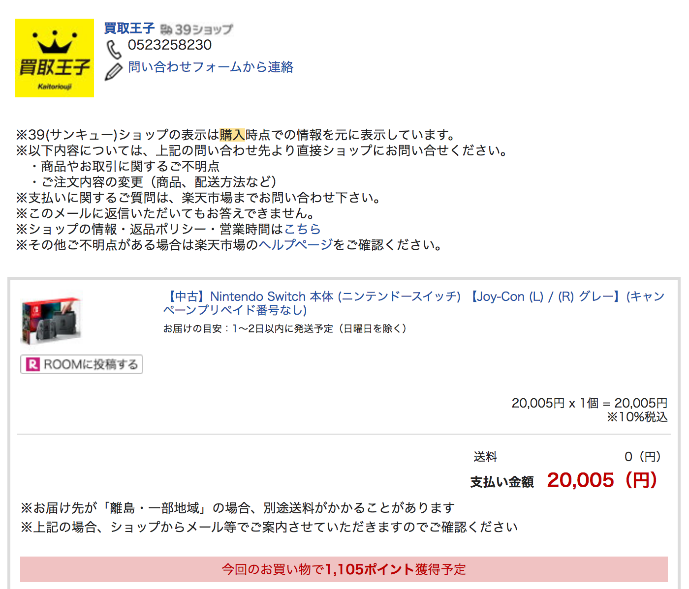 ということで、私が購入したお店は、楽天の中古品ショップ