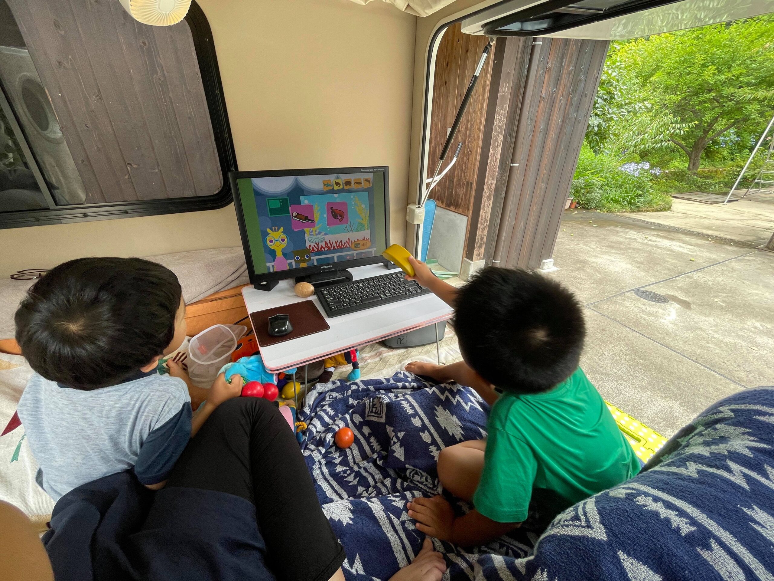 普段は自然遊びがメインで、あまりこういうお勉強はさせてこなかったんですが、自分が英語のヒアリングや発音で苦労したりコンプレックスを持っていた経験があるので、英語だけはちょっと早いうちに取り掛かりだけでもしておきたいかなぁと思いまして。