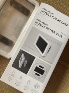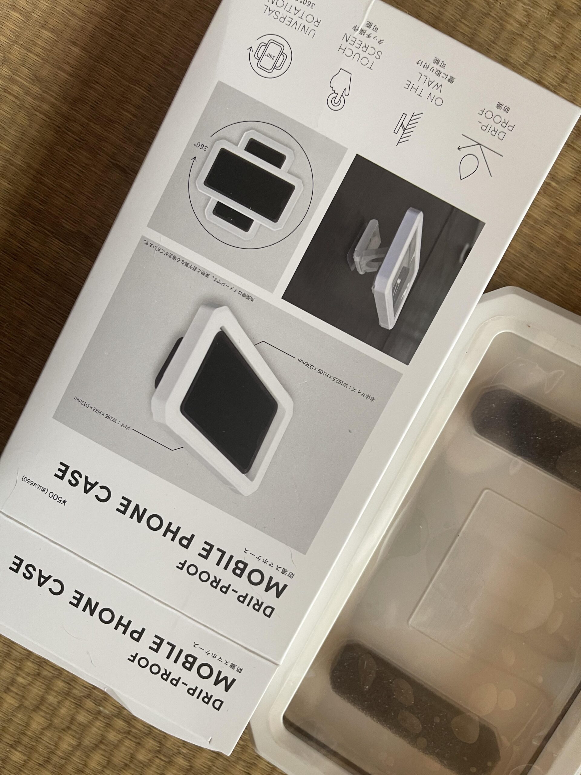 スリーコインズで売っていたスマホを防滴でお風呂とかで使えるアイテムだったのですが、私の持ってたiPhoneのサイズが大きすぎてお蔵入りしていたやつ。