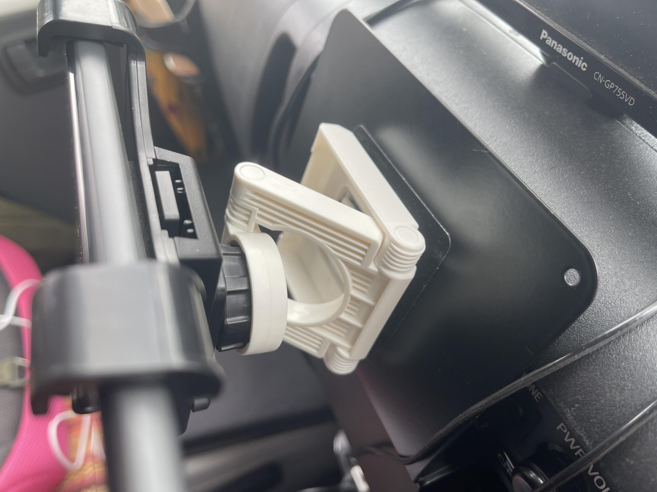 でも、首の部分が長くなったせいか、ちょっと車の振動でブルブルしてる感じがあるので、そのうち間の首振り機能はやめてがっちり固定にするかもしれません。