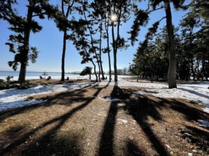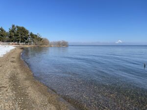 また、写真は冬なので寒々としていますが、公園内は夏休み期間中湖水浴が可能です。YouTubeの中でもご紹介していますが、コインシャワーや更衣室が支えて設備も万端!