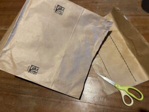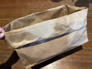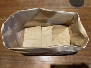 とてもしっかりした素材の紙袋で、これだけでも買うとなると結構高いもののような気がするし、野菜以外にも消耗品の保管袋として使い勝手が良いのではないかなと思います。