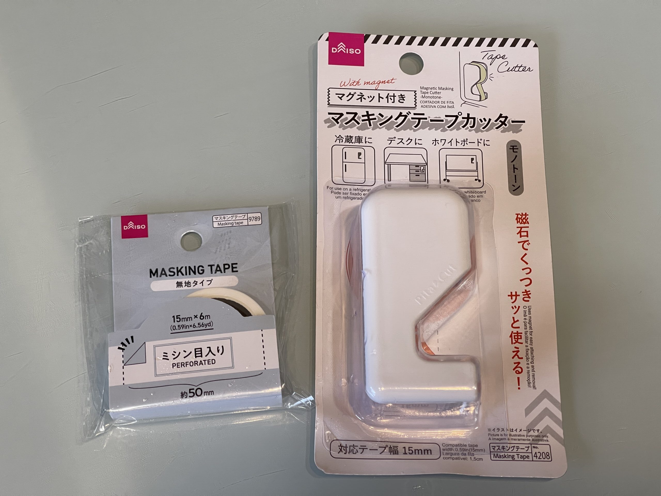 マステは白のものならなんでも良かったのですが、たまたまその時売り場にあったものがミシン目いりの6mのものでしたが、15mの大容量の白いマステもあるみたいなので、あればそっちのほうがオススメです
