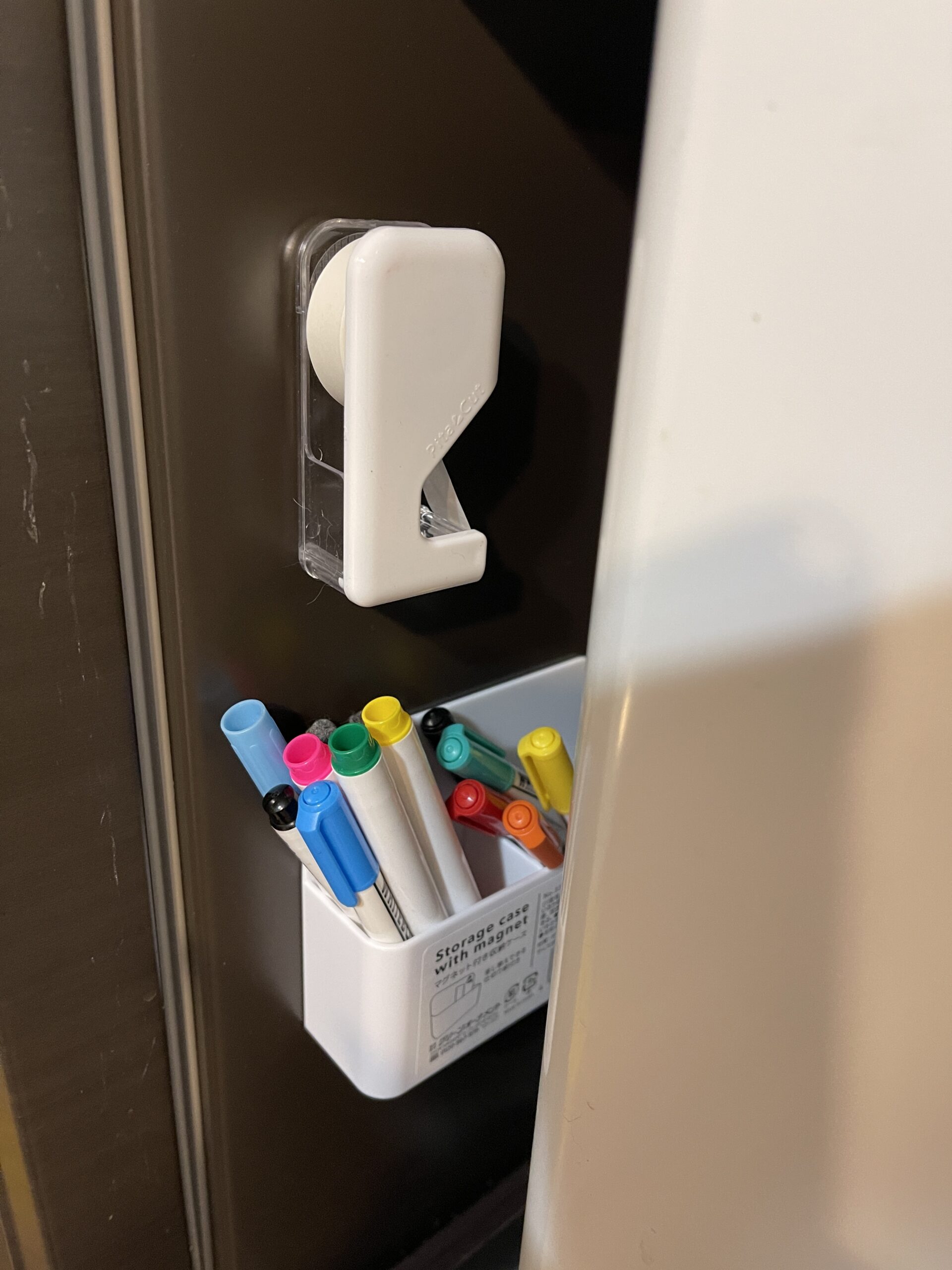 そしてこのテープカッターはマグネットがついてるから、冷蔵庫の側面に見える収納ができて、私がやりがちな「あれをドコにしまったのか思い出せない」問題を起こさずに済む!