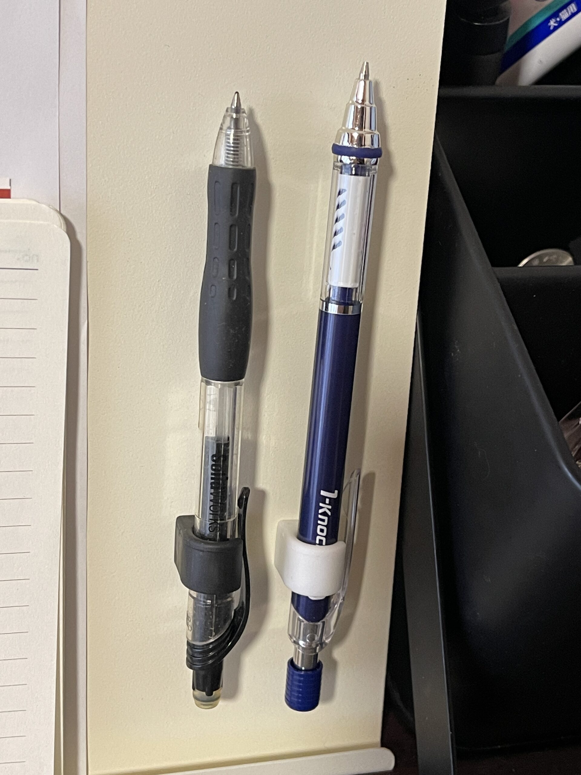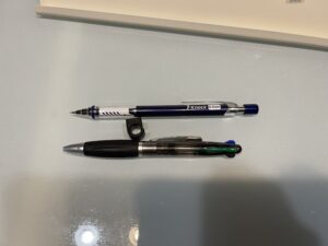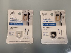 4色ボールペンのような太いペンは使えなかったので、そういうペンは玄関ドアにくっつく「ハンコ」ホルダーとかならいけるのかな?