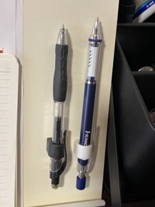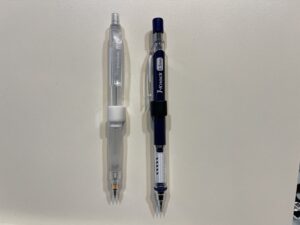 使って思ったのですが、ペンの先のほうに付けるとペンを持った時に違和感が出るので、おしり側に近い方に付けるのが良いですね