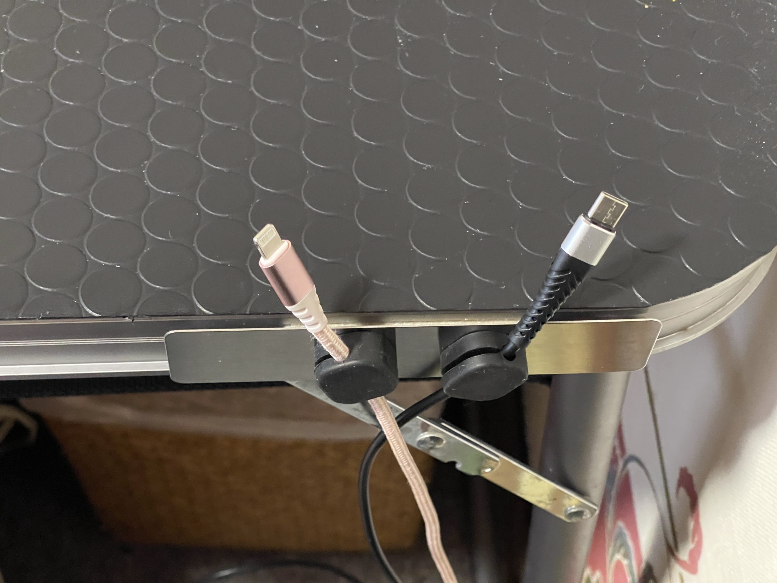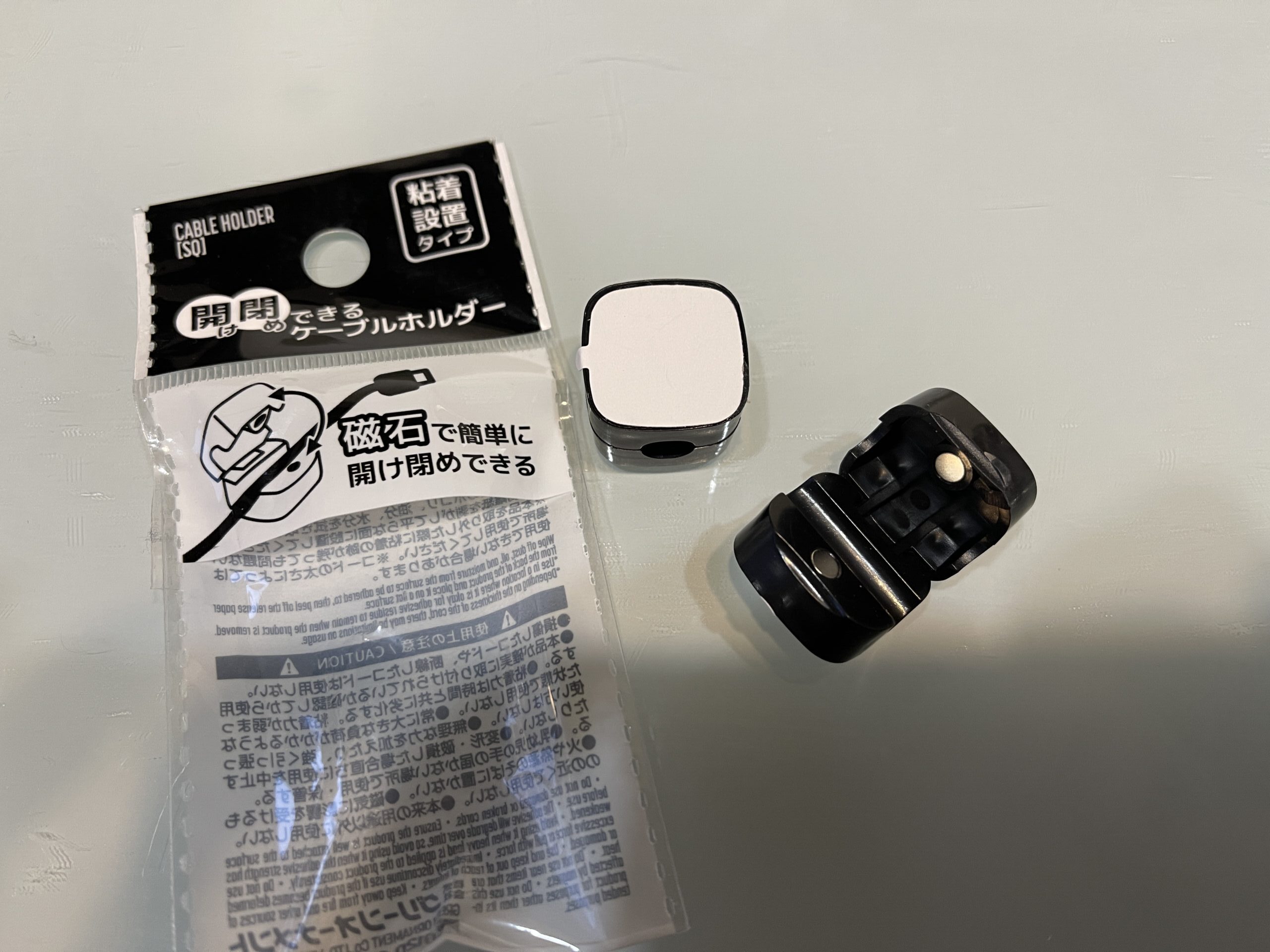 こちらは「磁石で開け閉めできる」ケーブルホルダーで、ケーブルの位置は粘着テープで固定になってしまうものです。うっかりすると間違えますよね