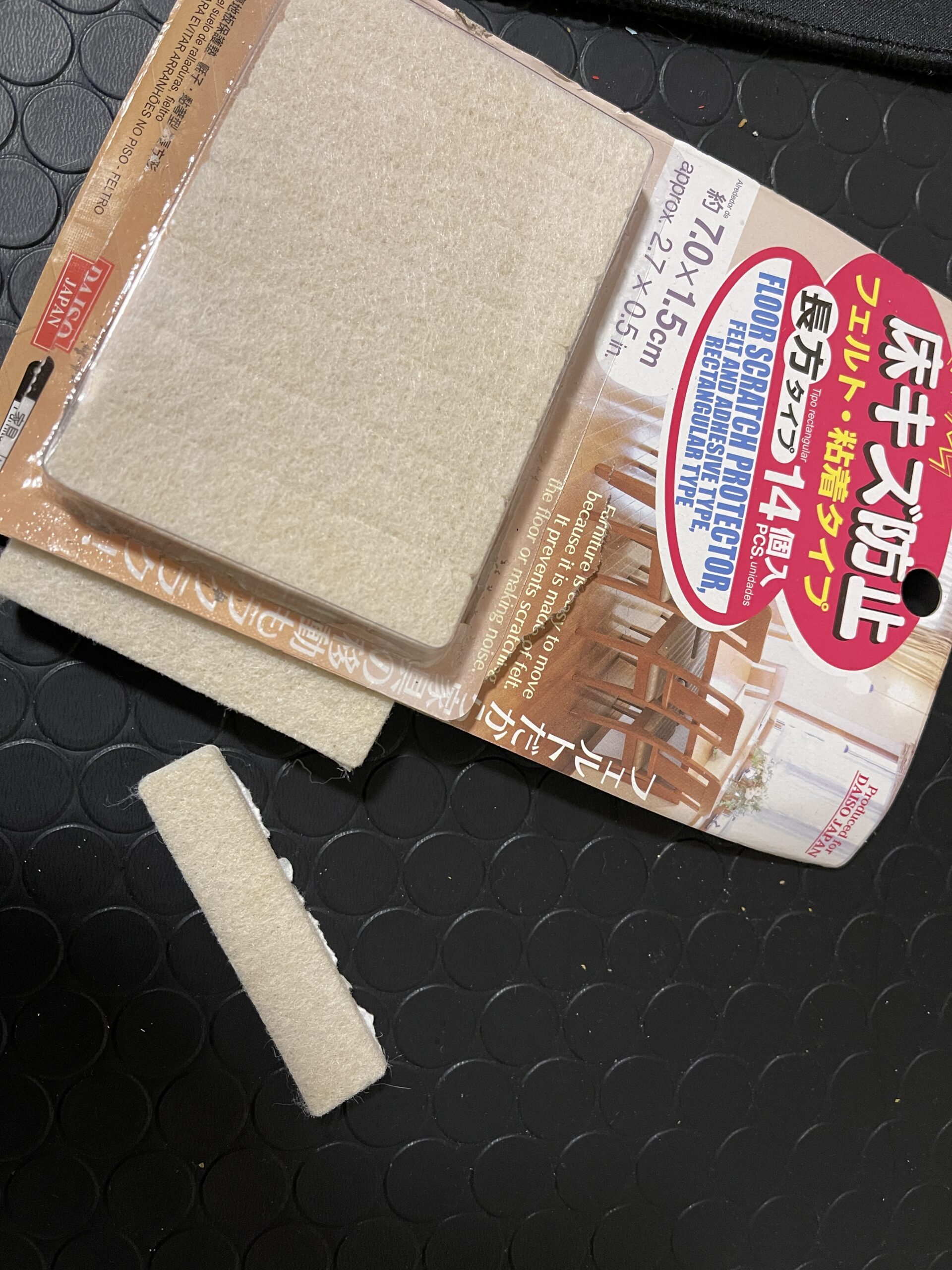 そこで、何のために買ったのかも忘れた「床キズ防止」のフェルトが再登場です
