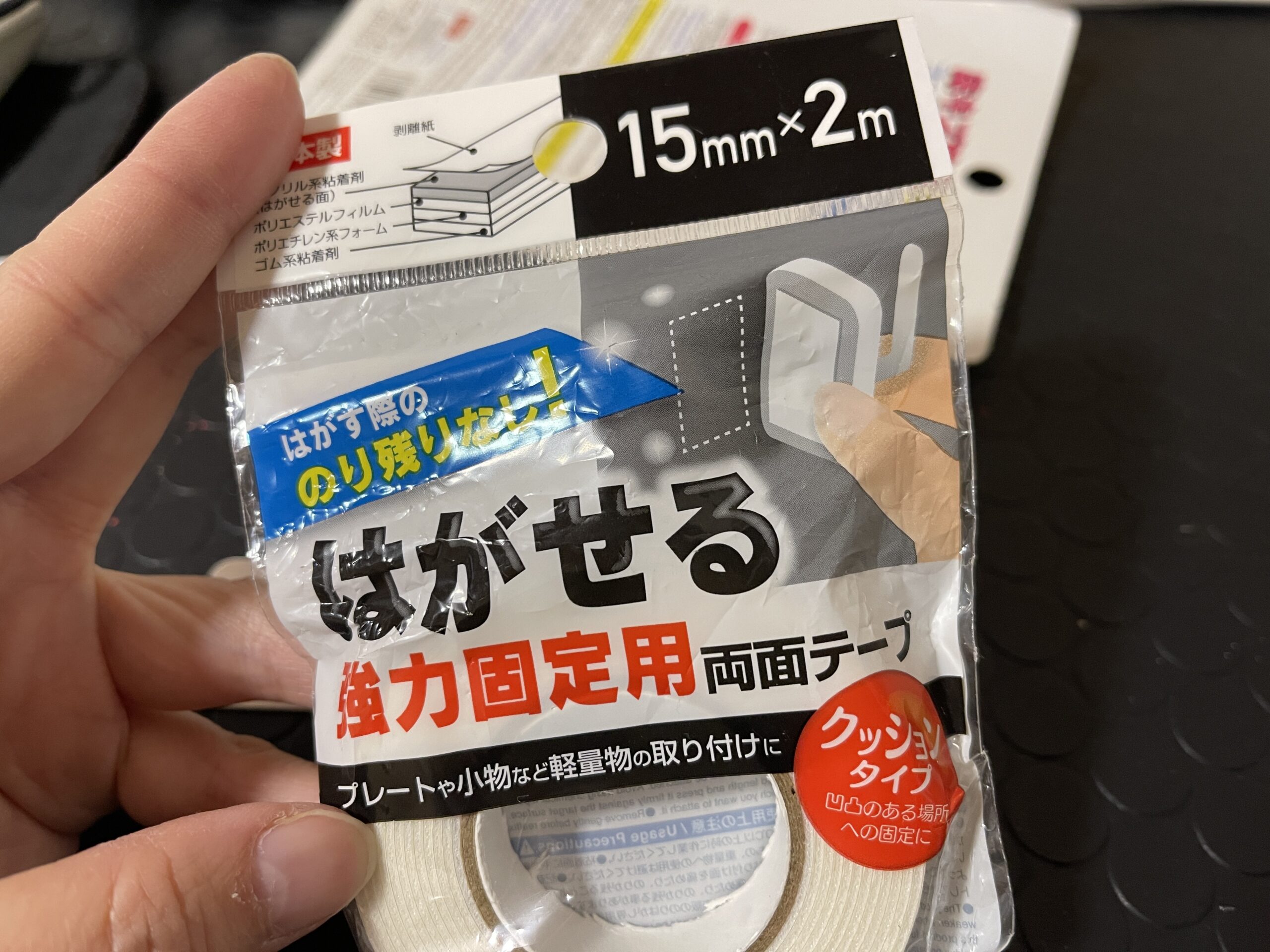 家に買い置きがあった「はがせる強力固定用両面テープ」をさらに上から貼ります
