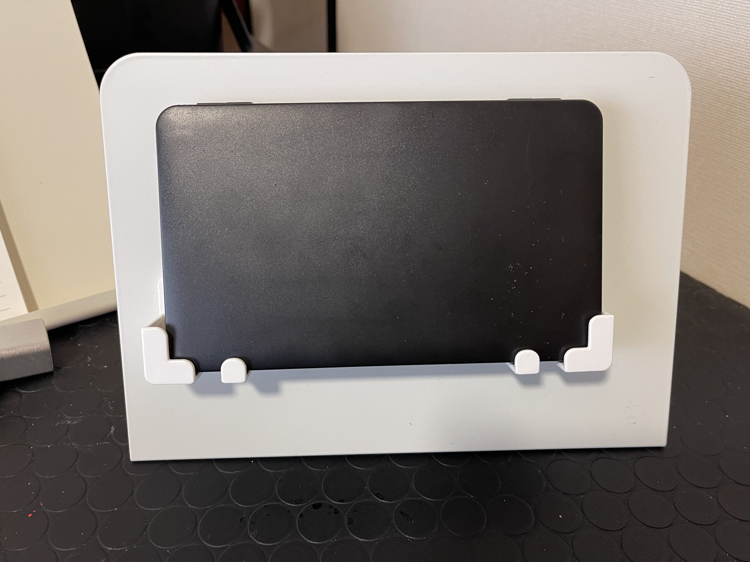 880円もするんですが、小学校のプリントA4サイズも立てられるし、ノートやメモ帳を広げたまま、下側の溝の部分がストッパーになってスタンドできるので買って良かったです。