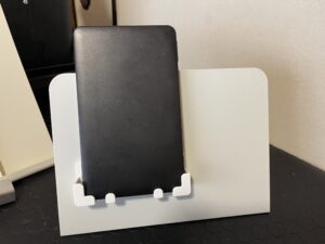 セリアのスチールスタンドと合わせてスマホホルダーとしてデスクに置いておくと、丁度良い角度で画面を見せてくれます
