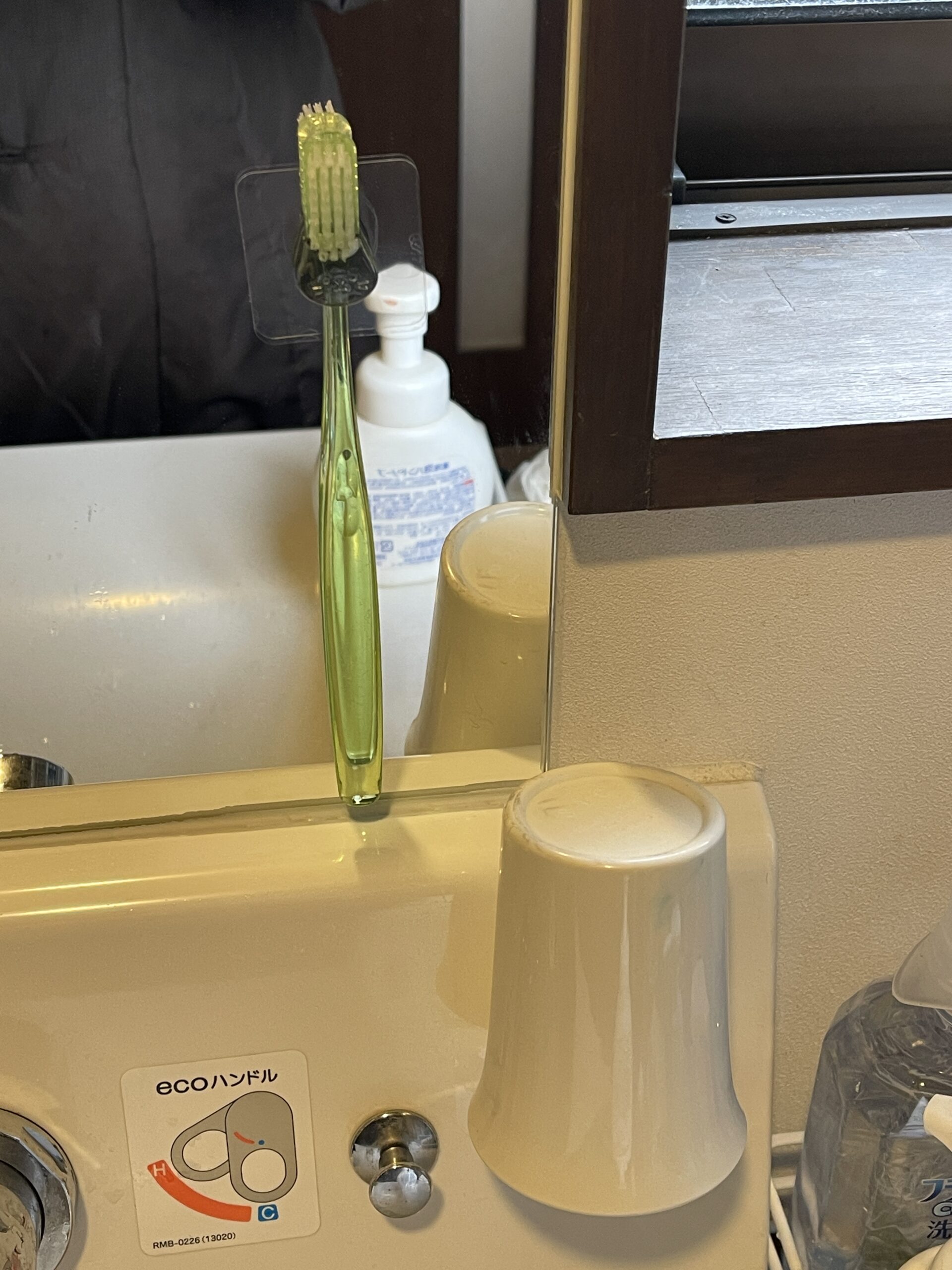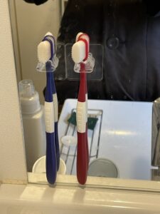 私と息子のコップと歯ブラシだけ浮かせる収納をして、夫のコップ・歯ブラシは以前のまま放置していたんですが、さすがに夫からクレームがきました(笑)