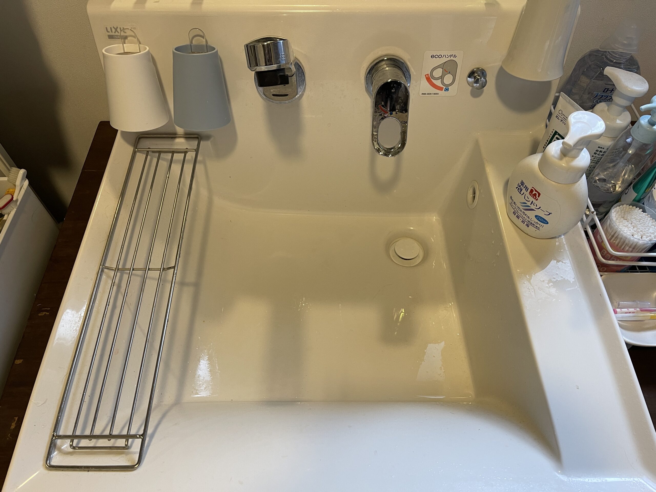 洗面台の上、歯ブラシとコップがなくなってだいぶスッキリです