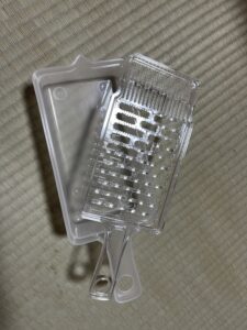 今まで使っていたおろし器はボウルの上で使うやつでしたが、これは下がお皿になっていて、ラクそうだなと思い購入