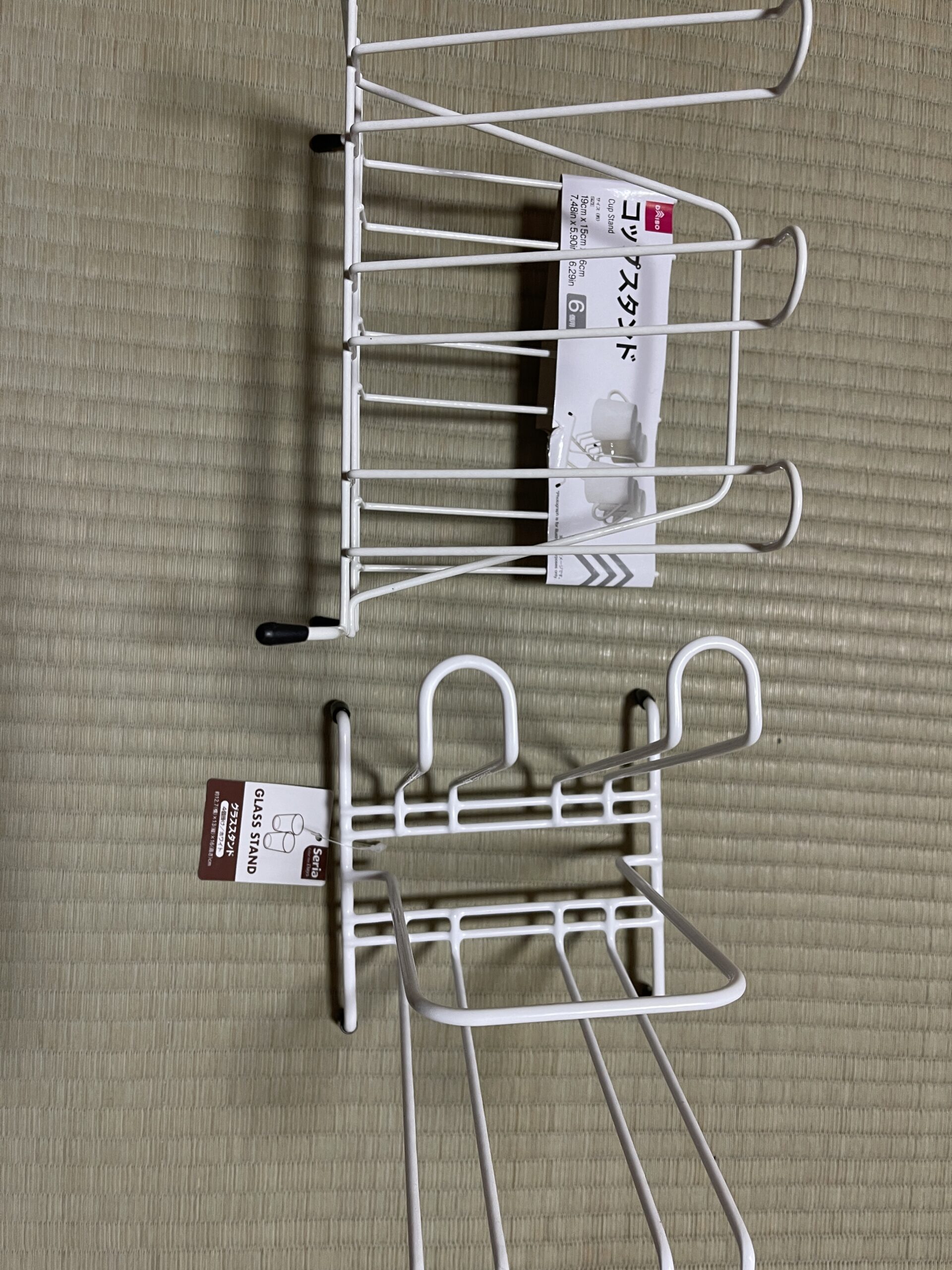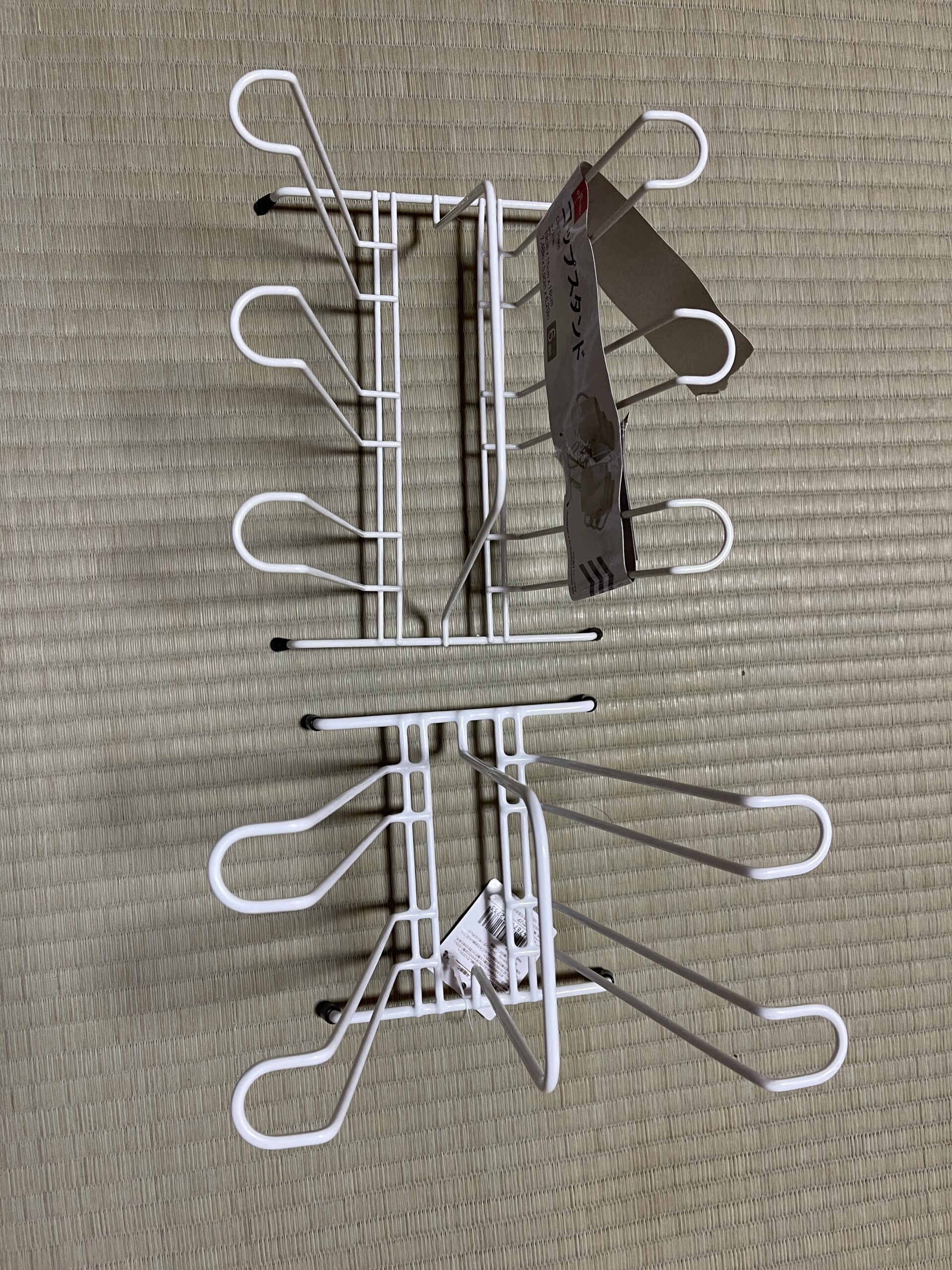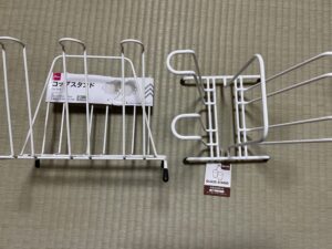 最初はセリアで話題の水筒スタンド(ボトル乾燥スタンド)を買おうと思ってたんですが、小さい水筒専用っぽくて、大きめの水筒だと不安定になりそうだったので、普通のコップスタンドのほうを買いました