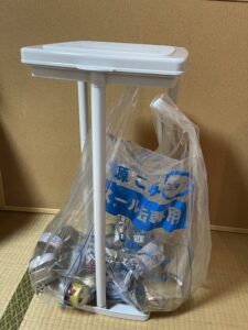今まで口をあけっぱなしで保管していた資源ゴミ袋なんですが、若干、缶詰の匂いが気になってはいました