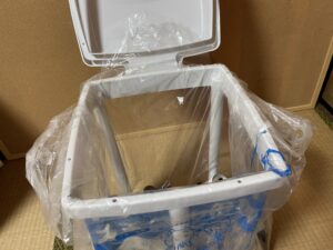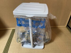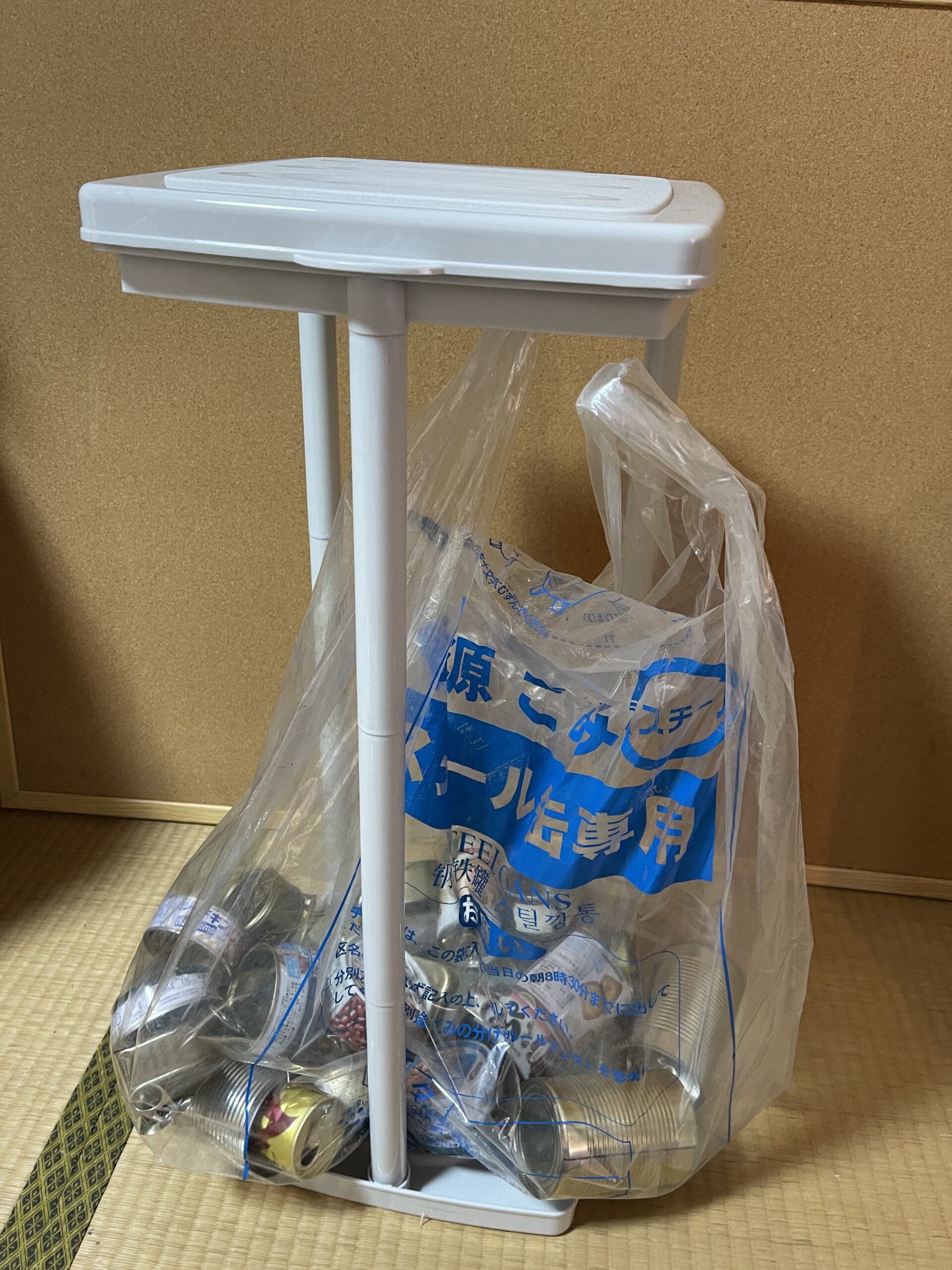 しかし、自治体のスチール用のゴミ袋には背が高すぎて使えないぞとなり