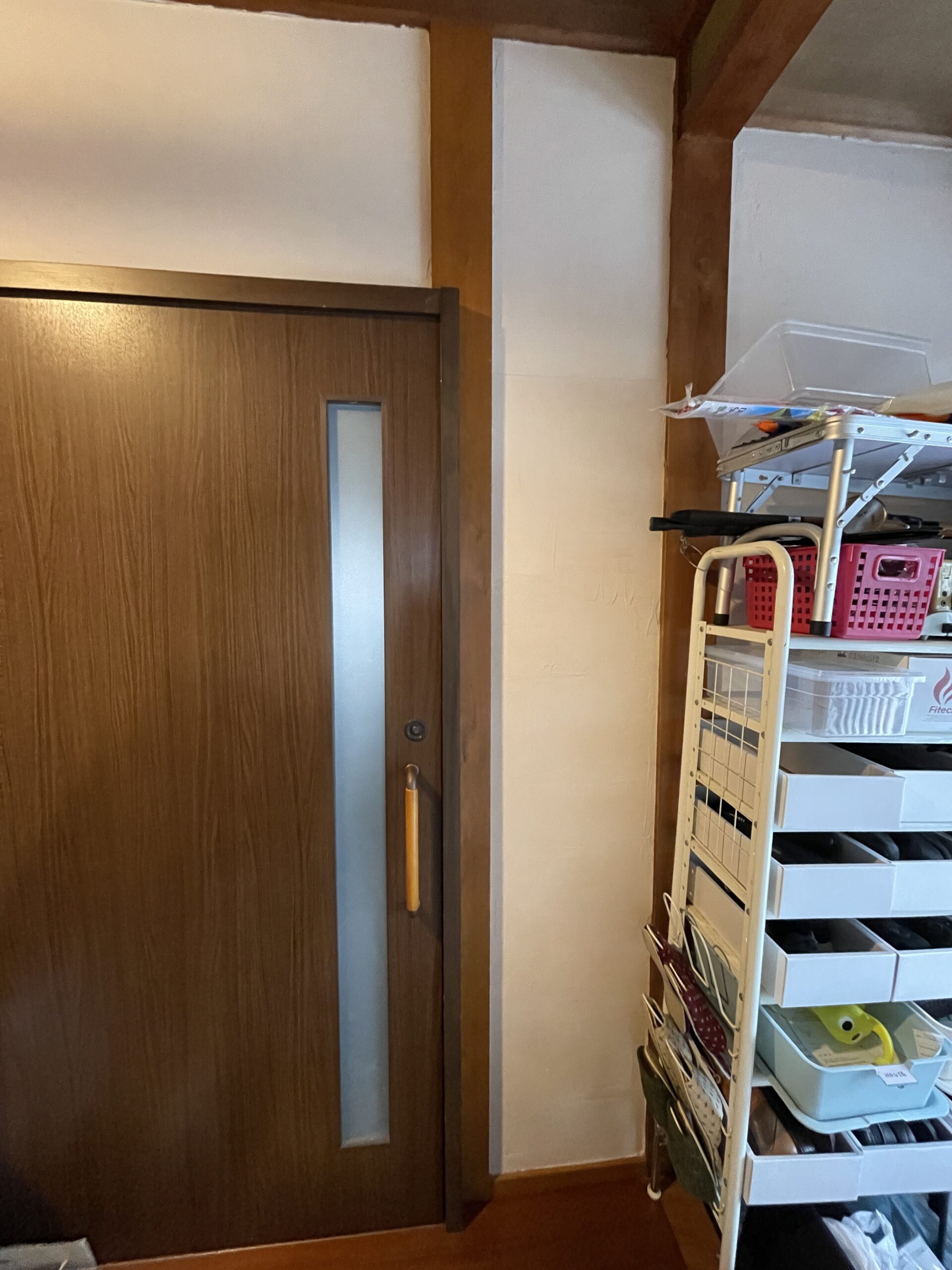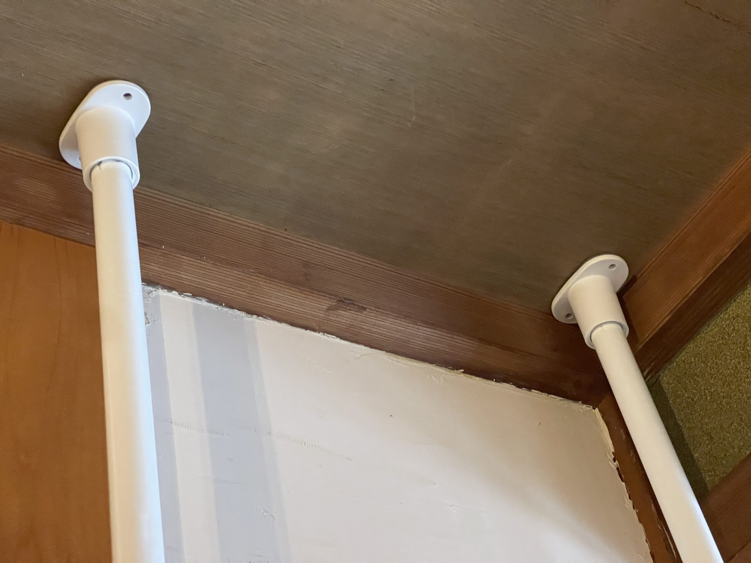 二次の避難リュックは重たいのでこのつっぱり収納では強度不足になりそうです。2次は外の倉庫に入れておこうと思っています