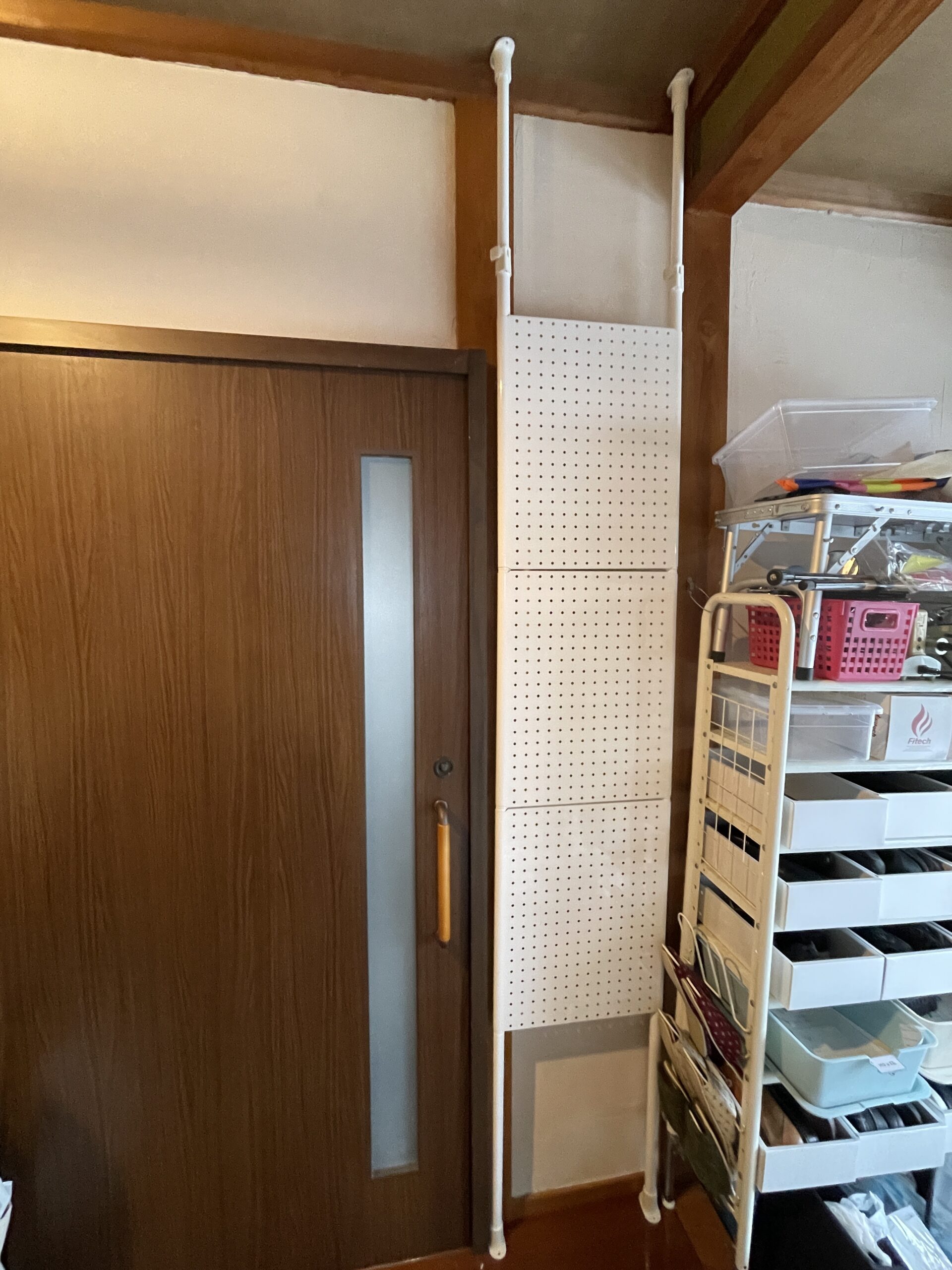 この度、ついに思い立って、玄関の狭い壁の一部につっぱり式のパンチングパネルを設置することに