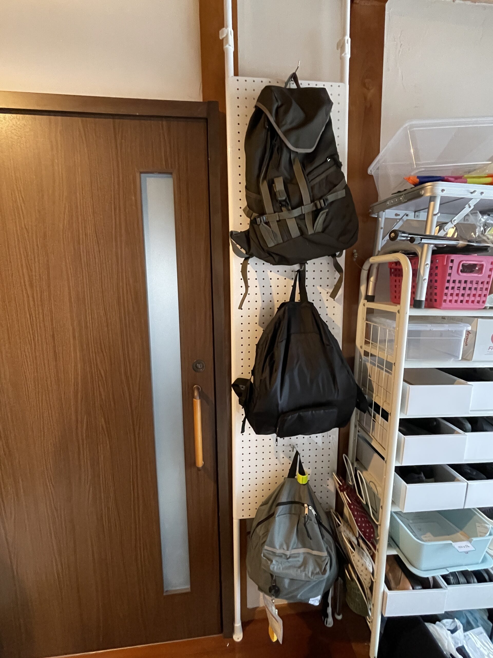 上から、夫、私、息子の3人分のリュックをかけておけるようにはなりました