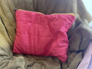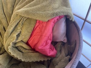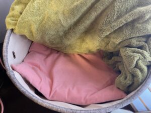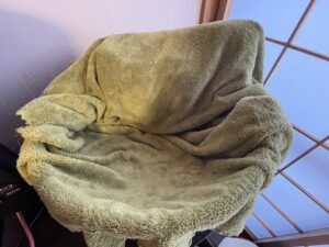 これが猫ベッド(上からひざ掛けがかかった状態)