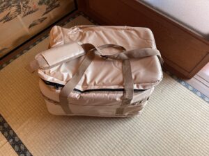 ただ、肩掛けのバッグがあることで、女性でも、重たいですが一応一人で移動させられますし、イベントや災害時の飲食設備の移動なんかには重宝しそうです