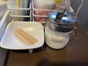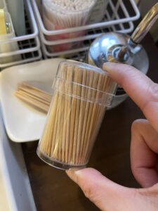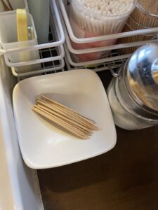 竹楊枝は、100均でプラスチックケースに入ったものが売っていて、普通の木のものよりも硬いので折れにくくて使いやすいです。